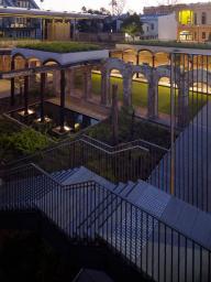 現(xiàn)有的人造景觀體現(xiàn)了該項(xiàng)目的理念。可進(jìn)入的下沉花園和水池被預(yù)制混凝土板包圍,中間保留蓄水室遺留的殘骸。殘骸邊緣由混凝土支撐,突出了原始磚拱的獨(dú)特曲線造型?;貎?nèi)維多利亞時(shí)代的樹蕨花園暗示了蓄水池的始建時(shí)代。