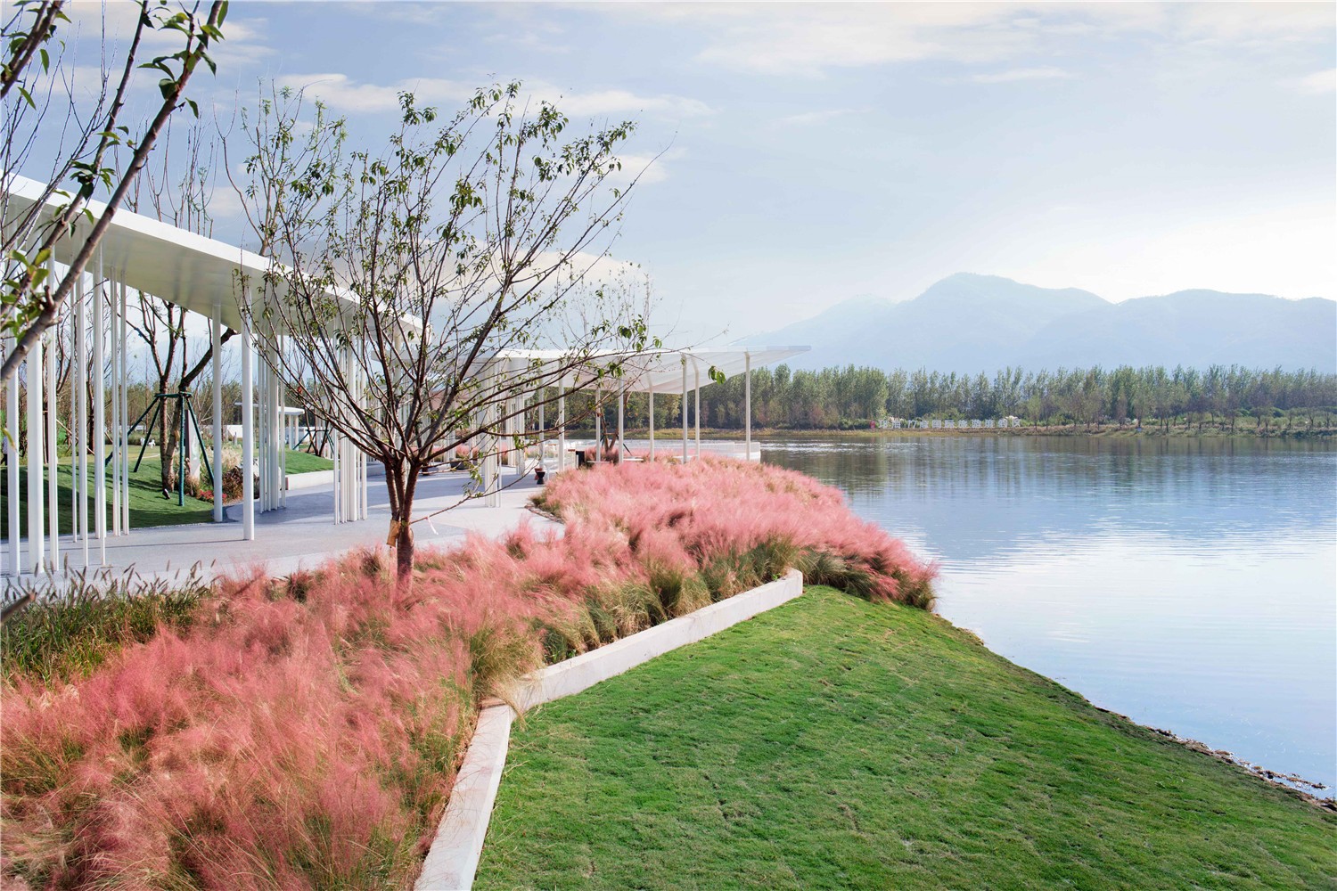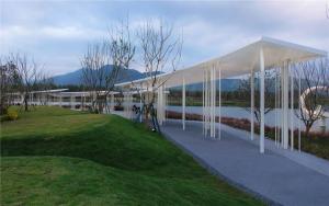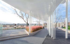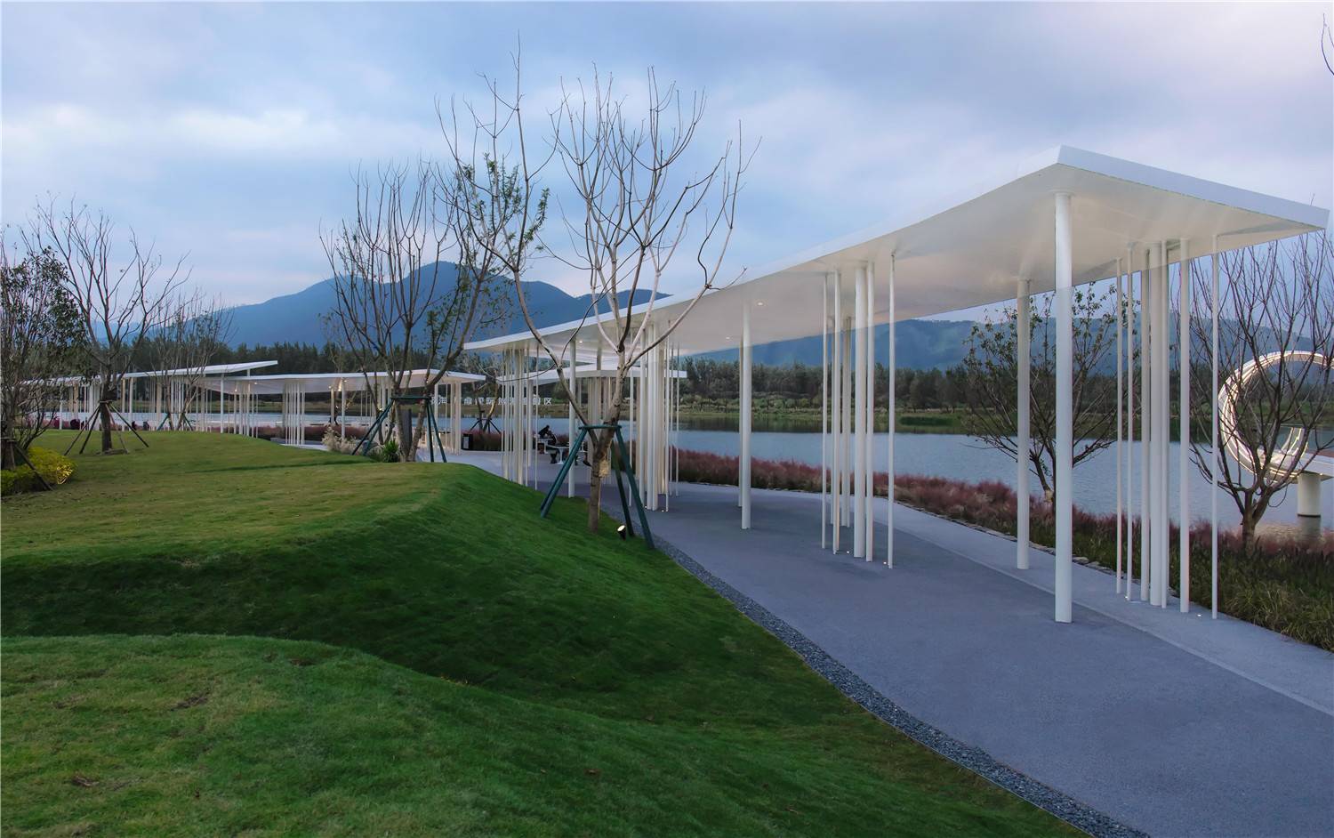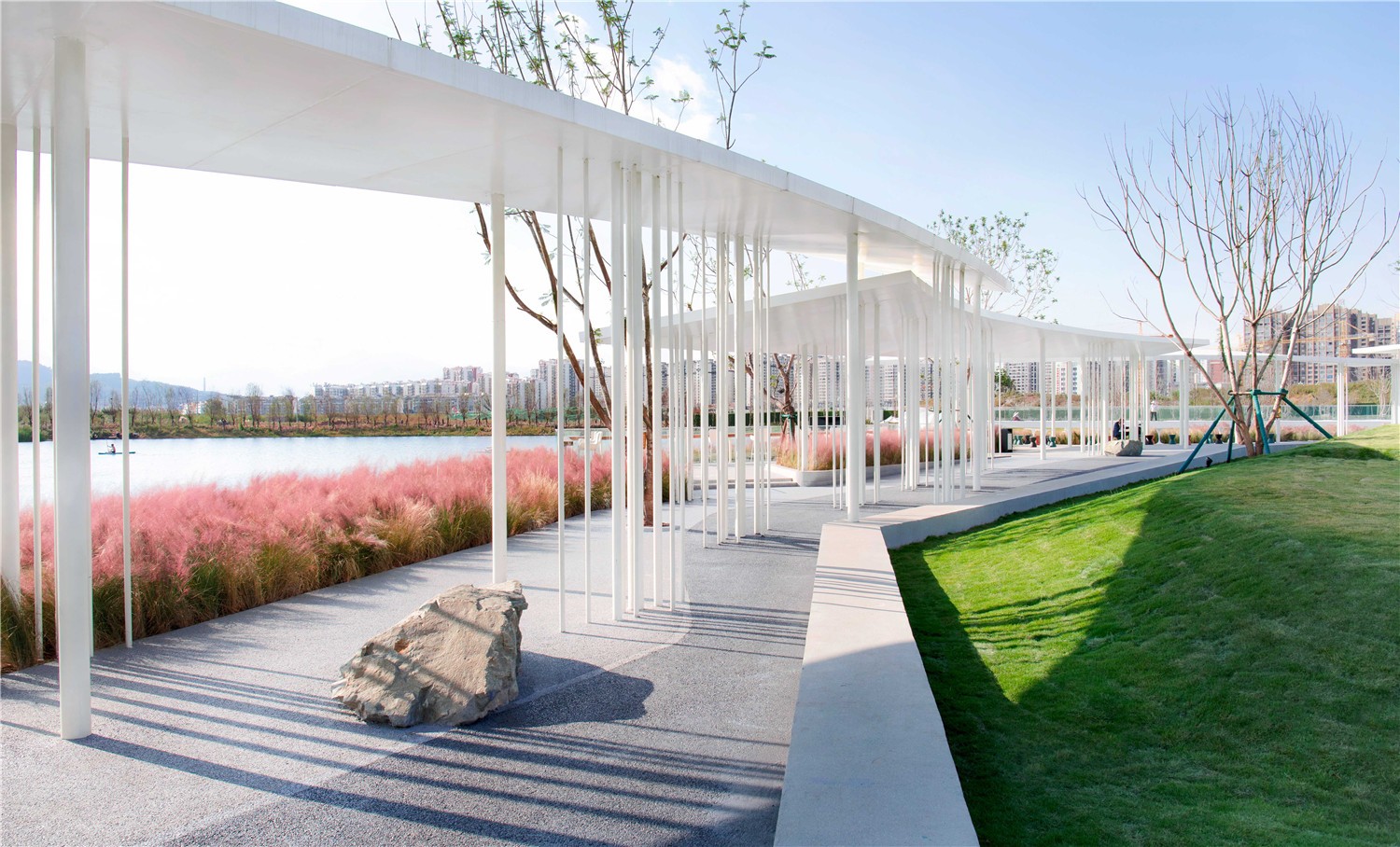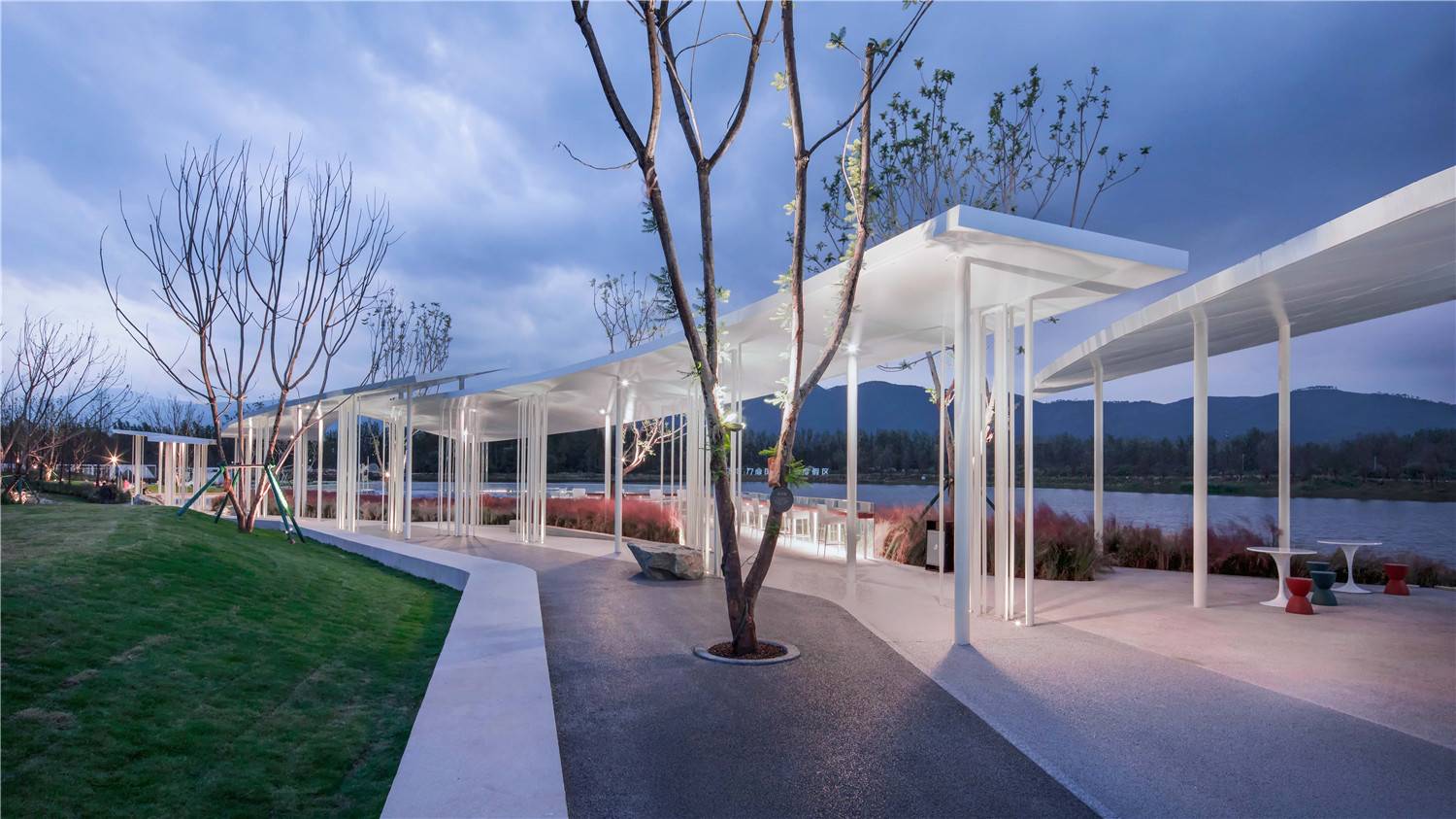 As the best area for hydrophobic and water viewing, we transit the site through corridors to form a quality and stylish spatial experience. At the same time, it integrates the function of slow life, and enhances the vacation and leisure feeling of the project. It is like listening to the wind and relaxing. The overall corridor like a pleasant sea level line gently blends into the site on the lake, delineating the boundary of the lake, light and quiet.