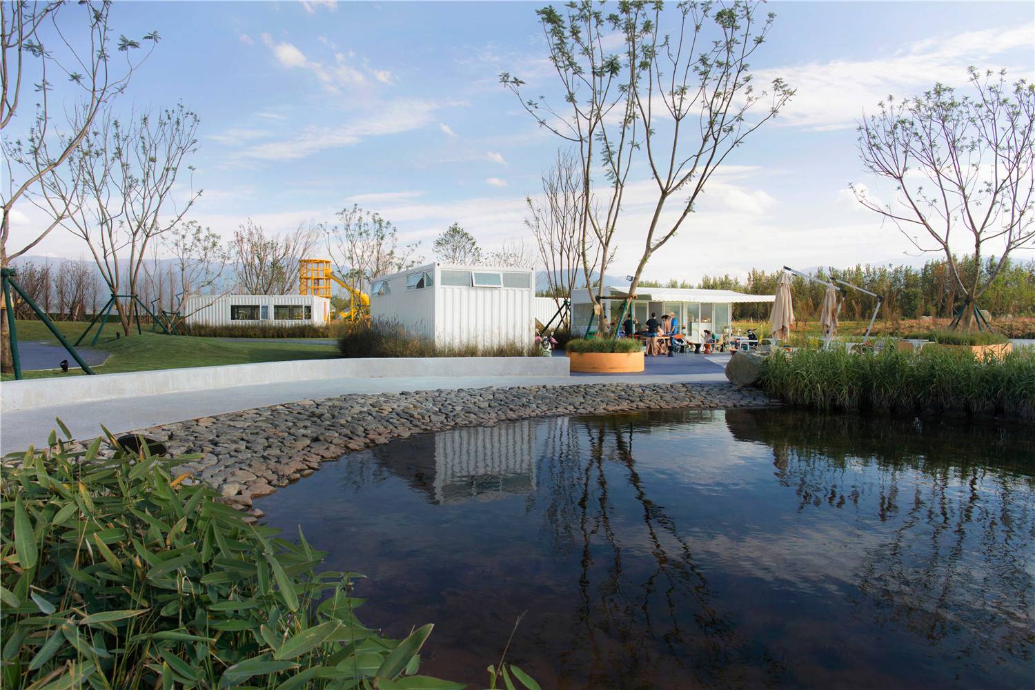 - Rainwater collection pool combines service buildings such as camping site and outdoor coffee bar to promote the symbiosis of human and nature