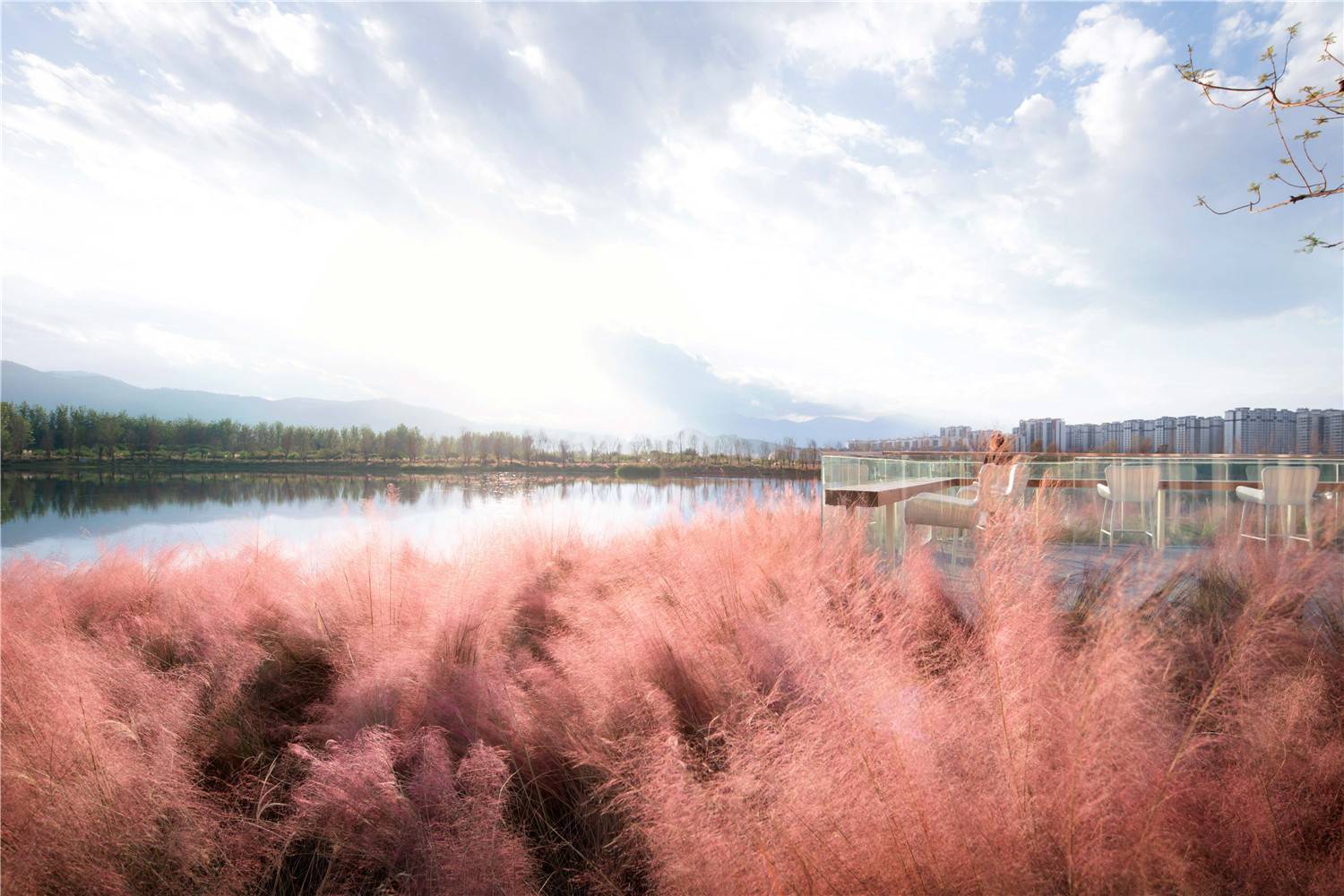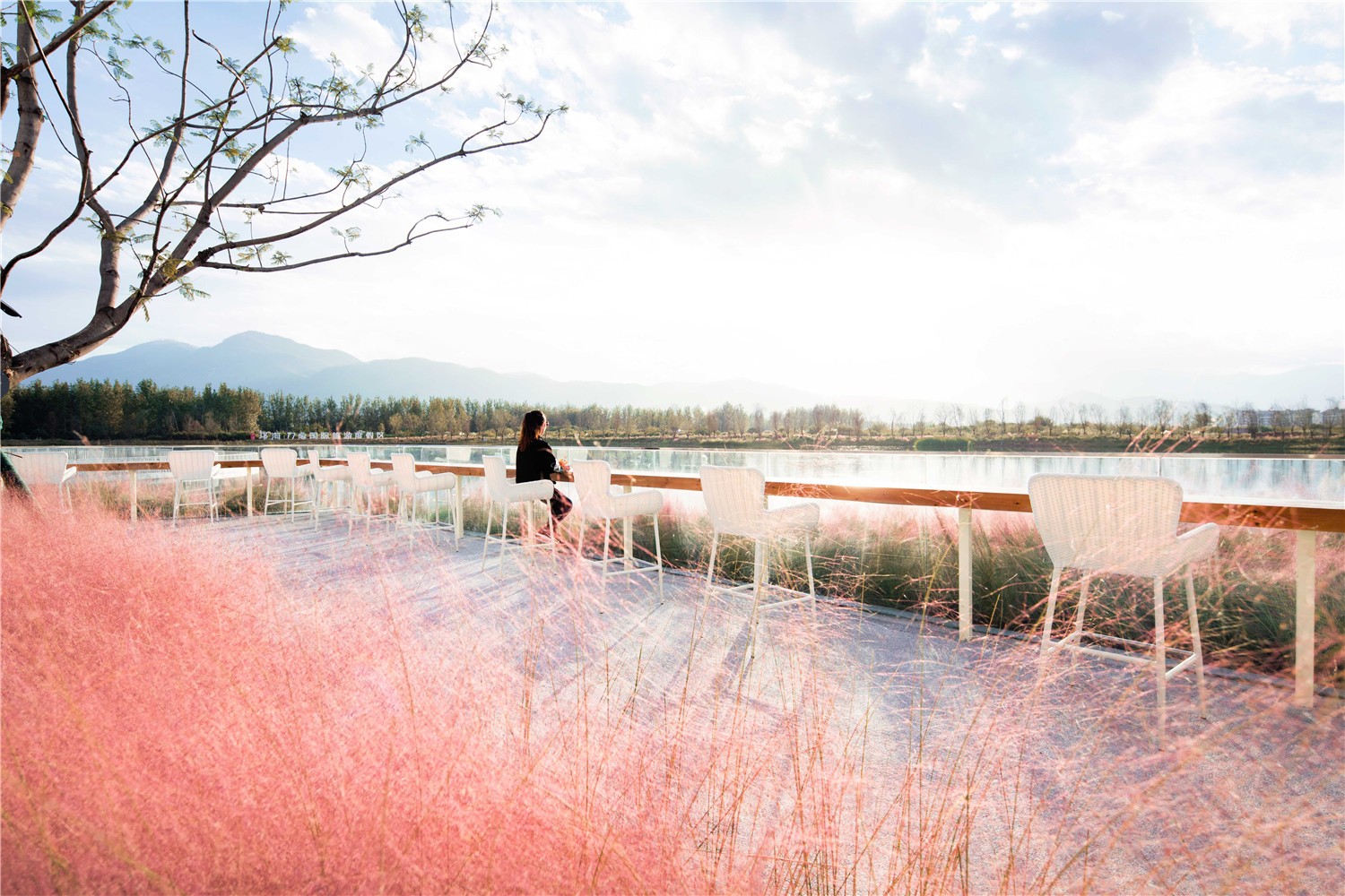 In the corridor area with the best vision, the outdoor bar space can be extended for sightseeing. When people pass the corridor, they can stay here to watch the lake, making people closer to nature. The lake is full of water, the rosy clouds are dazzling, the sky is bright, the birds are flying and the grass is growing. All the beauties are unfolded here, forming an ideal communication space.