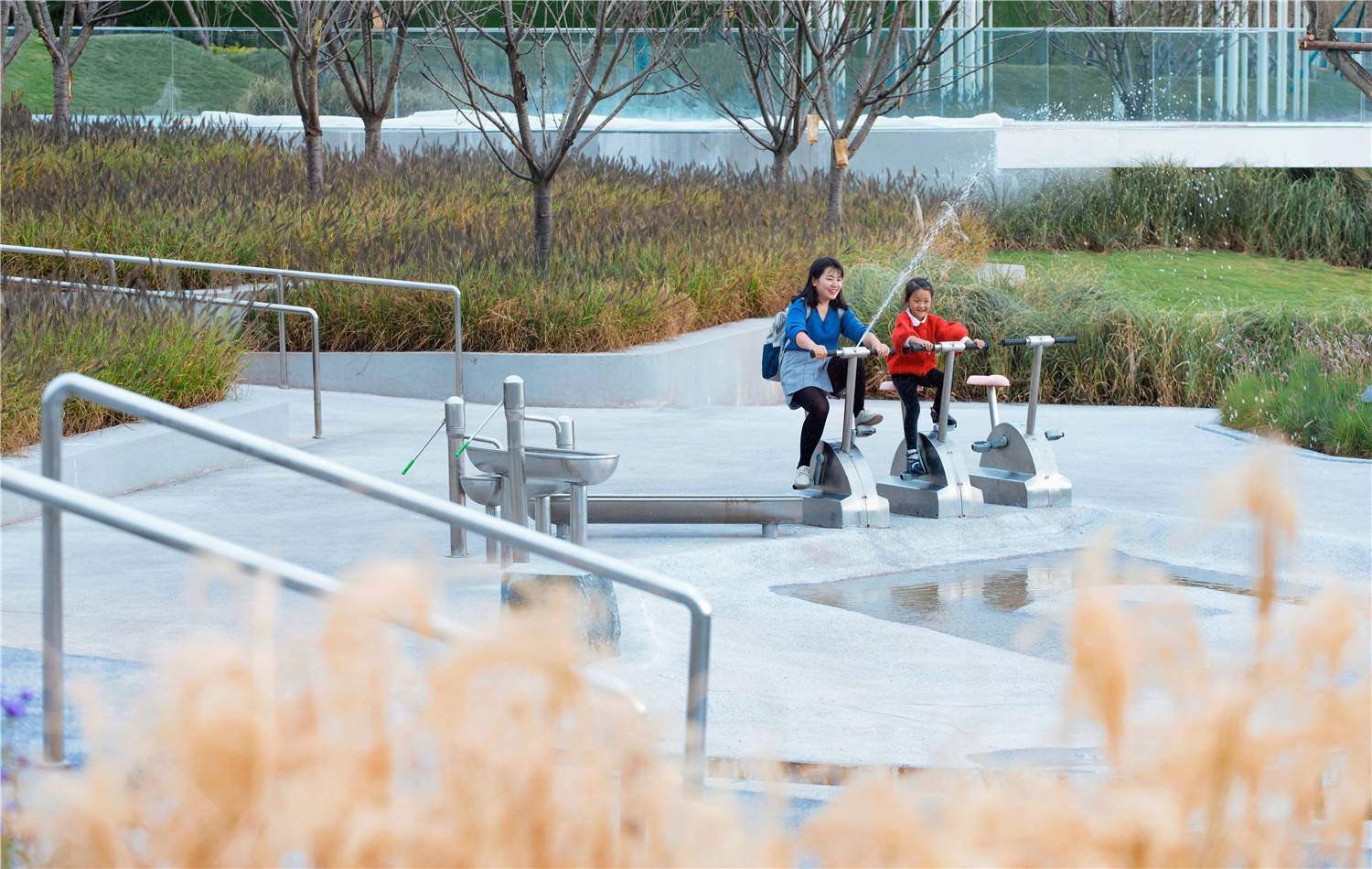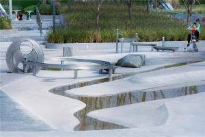 The shallow green space in the landscape is used to collect and absorb the rainwater from the roof or the ground. The rainwater can be purified through the infiltration and filtration of plants and sandy soil, and gradually infiltrate into the soil to conserve groundwater or supply water for the landscape. To create rich and diverse hydrophobia experience for the citizens, while fully reflecting the symbiotic place experience of human and nature.