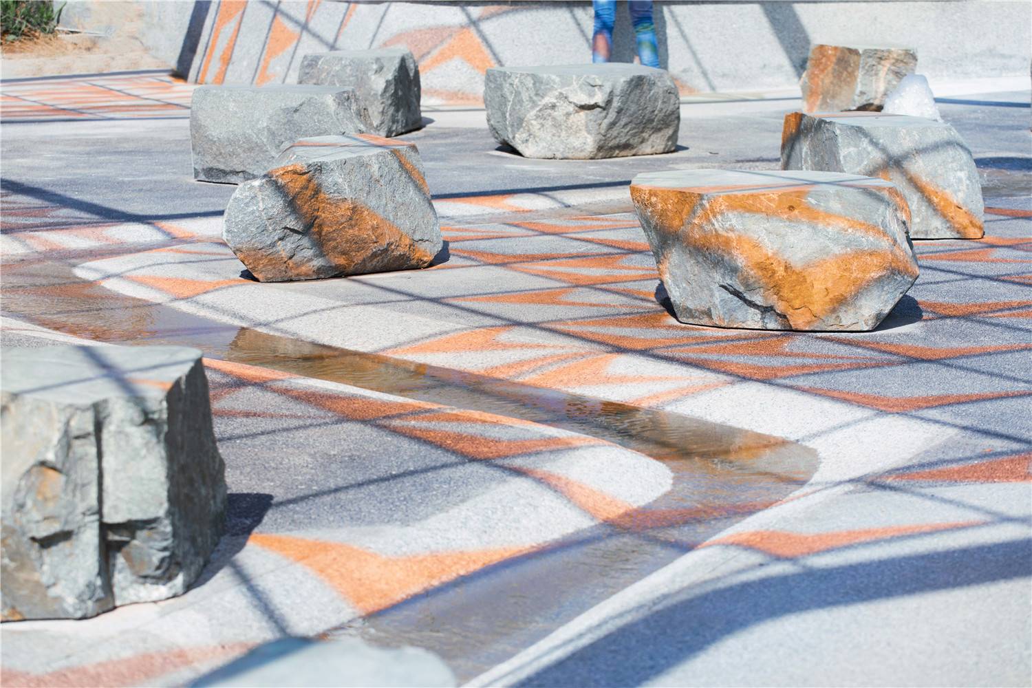 廊架之下以線性為主導(dǎo)的臺地戲水景觀,引導(dǎo)市民向岸邊探尋。下沉廣場中心放置了供大人和孩子們的娛樂戲水設(shè)施,在西昌晝暖夜涼天氣下,為市民們帶來清涼的互動體驗(yàn)。