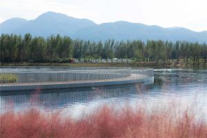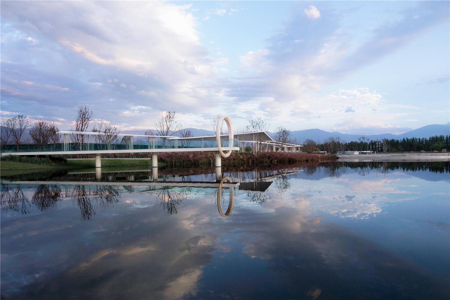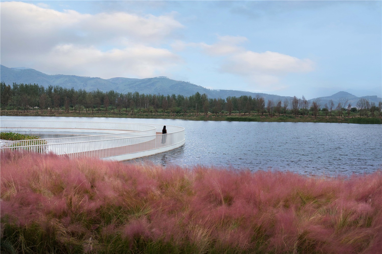 In addition, the design also makes full use of the terrain characteristics of the site itself, creating many attractive space scenes: in the evening with gentle breeze, the moon rises to the lake surface, the mirror waves open, and the light of stars sprinkles in the lake, and a striking cantilever observation platform "floats" on the lake surface.