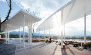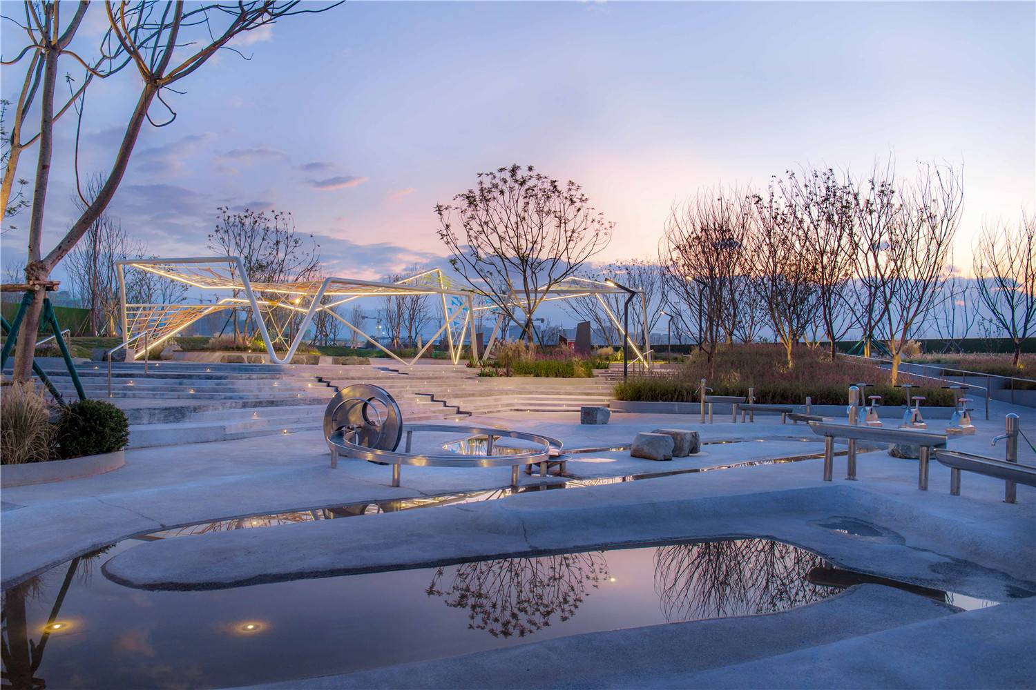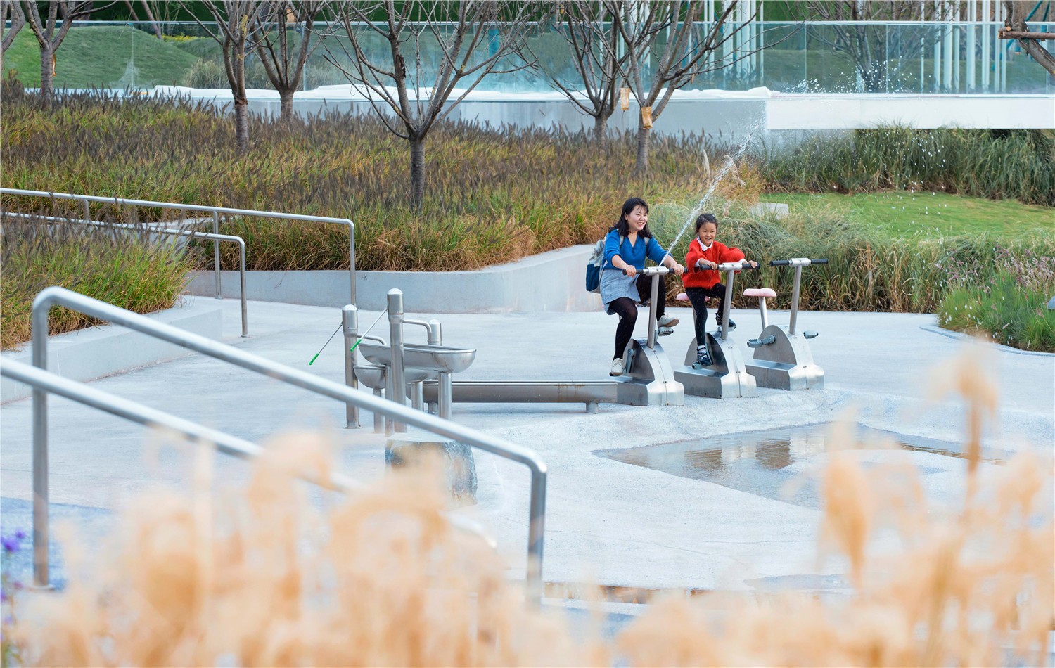 The linear platform-dominated water play landscape under the gallery guides citizens to explore the shore. In the center of the sinking square, there are entertainment and water facilities for adults and children, which will bring a cool and interactive experience to the citizens in the warm and cold weather of Xichang.