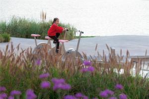 臺地設(shè)計(jì)使場地更富有層次感,我們在視線較好的下沉的空間里形成可停留、觀望的臺地空間,人們在此觀賞遠(yuǎn)處的湖岸美景是十分舒適,未來這也將成為一個(gè)半圍合的下沉活動廣場,供人們在這里交流、互動。