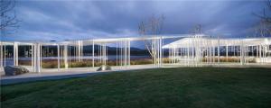 此外,設(shè)計(jì)還充分利用了場地本身的地形特點(diǎn),創(chuàng)造了許多吸引人的空間景象:在微風(fēng)徐徐的傍晚,月升湖面鏡波開,在湖中灑下微微星光,一個(gè)引人注目的懸臂瞭望臺“漂浮”在湖面之上。