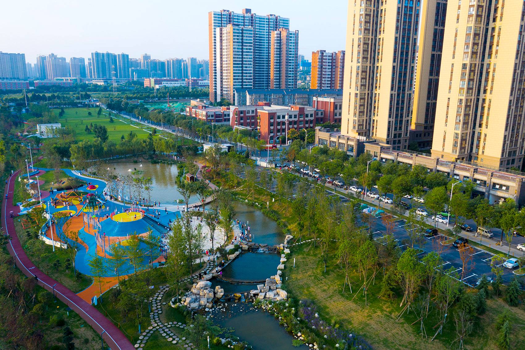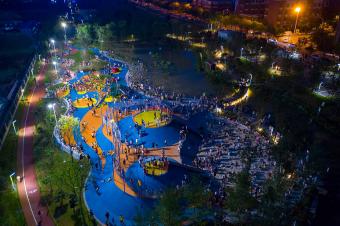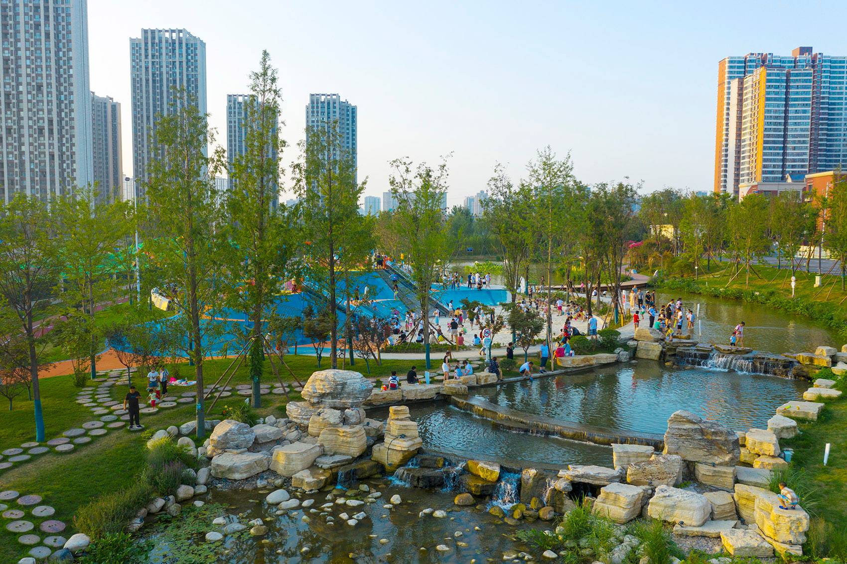 In order to meet the needs of parent-child activities, the planning and design of the 100-meter green belt, water area, and children playground provide the surrounding communities with outdoor family leisure and interactive communication spaces, which also provide an urban public space with broad vision, beautiful landscape and complete facilities.