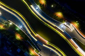 ▲通過豐富的夜景亮化設(shè)計(jì),突出流暢的河岸線,為市民夜間休閑活動(dòng)提供多樣的公共空間 Through the night scene lighting, the smooth riverbank line is highlighted. It can also provide a variety of public space for citizens’ leisure activities at night. ?中國電建集團(tuán)西北勘測設(shè)計(jì)研究院有限公司