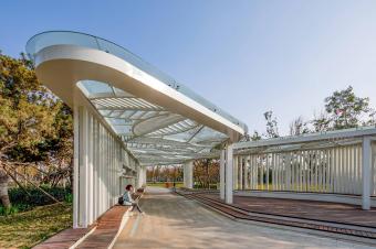 ▲特色景觀廊架造型統(tǒng)一又富有細(xì)節(jié)變化,提供遮陰避雨環(huán)境,The 5 characteristic pergolas are unified in shape and rich in detail changes, which provide shelter from the rain ? 大丹工作室