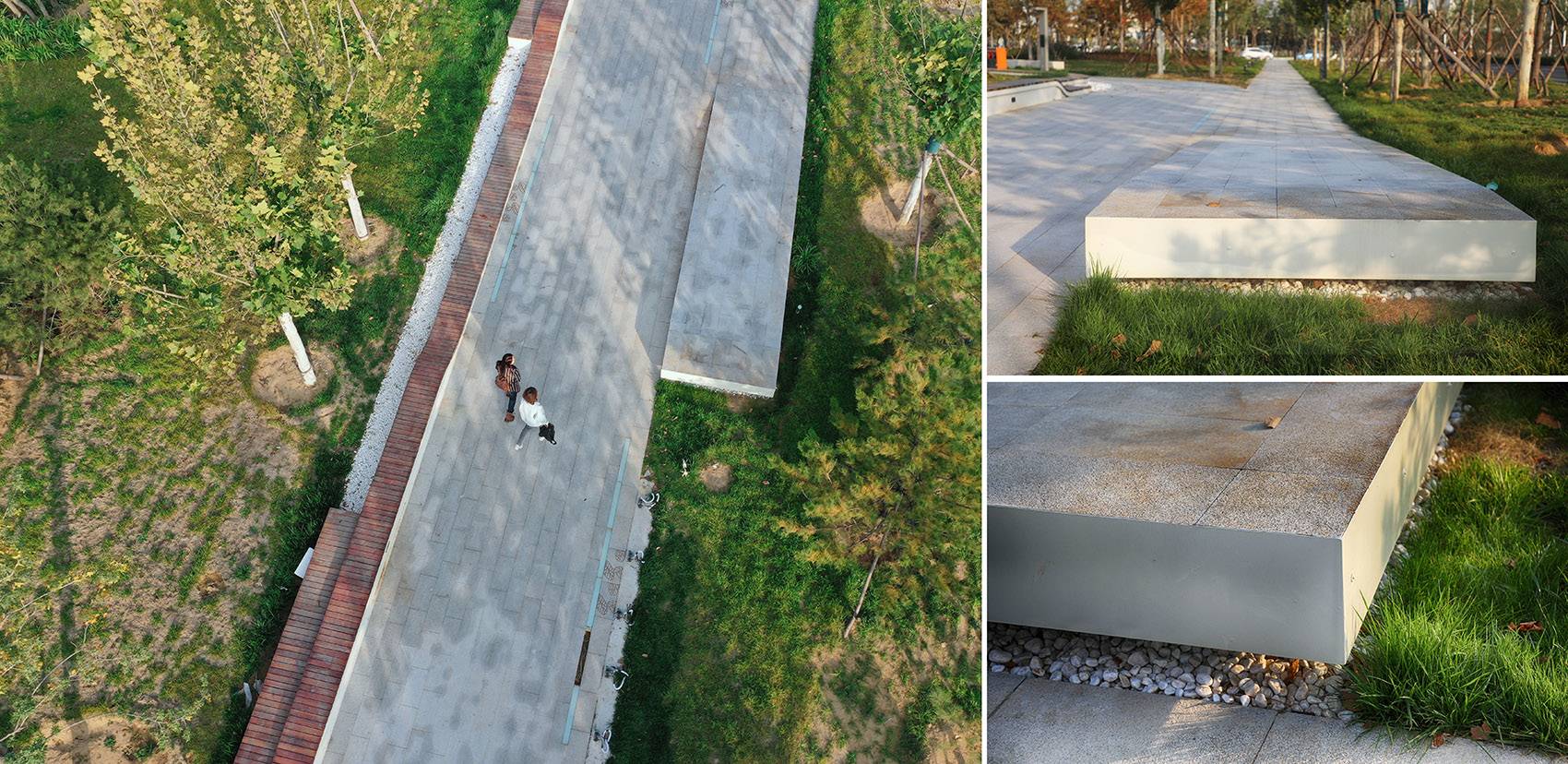 ▲道路與石凳細(xì)部,details of the path and the urban furniture ? 大丹工作室