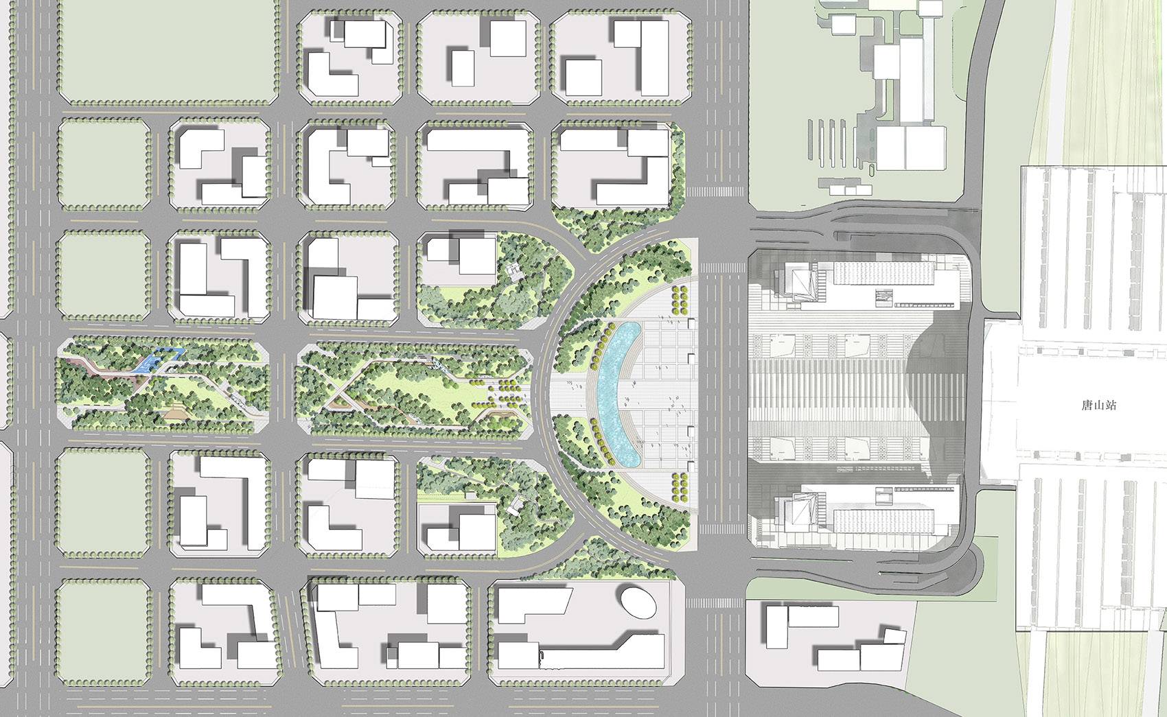 In the future, the Tangshan-west Station District will integrate industrial functional areas such as business centers, office buildings, hotels, exhibition areas, etc. This will attracts the white-collar elites and high-end business people from Beijing, Tianjin and Hebei. Therefore, the plaza and green space not only display the image of the city, and promote the traffic flow of passengers. but also provide high-quality CBD green open space for the surrounding business people for leisure purpose.
