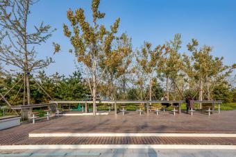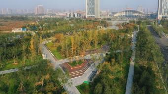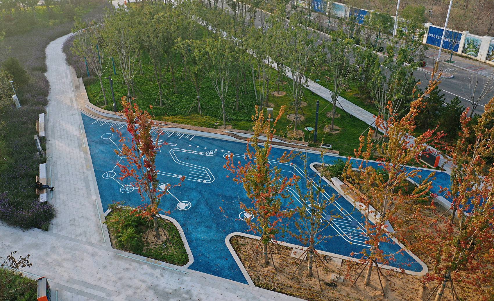 We planted a large proportion of evergreen deciduous trees to form the forest skeleton and create an atmosphere of urban forest. The coverage rate was as high as 70%. We use many red maples, red oaks, clustered Mongolian oaks, Acer truncatums and other fall-colored leaf trees to construct mixed forest and highlight autumn characteristics. Using flowering plants such as begonia, peach, willow verbena, etc. to enrich the color changes in the human activity area.