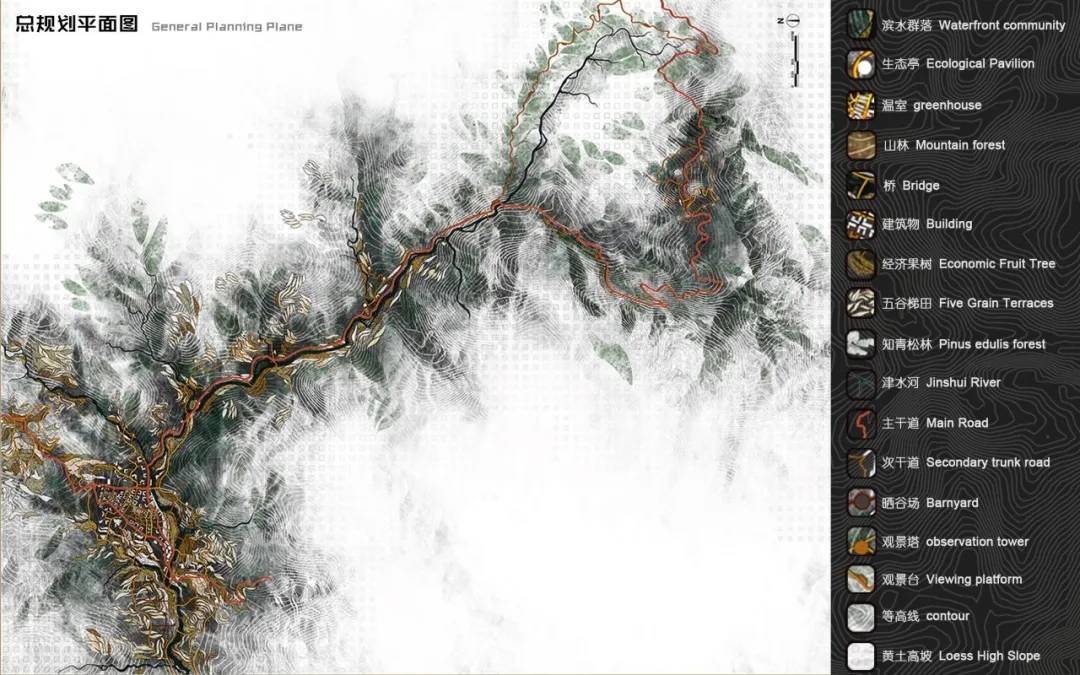 選題包含了獨(dú)特的知青文化和黃土山林的特點(diǎn),強(qiáng)調(diào)了歷史文化的傳承。尺度合理,圖紙表達(dá)清晰且有感染力,但在設(shè)計(jì)目標(biāo)和設(shè)計(jì)成果的一致性稍有欠缺。