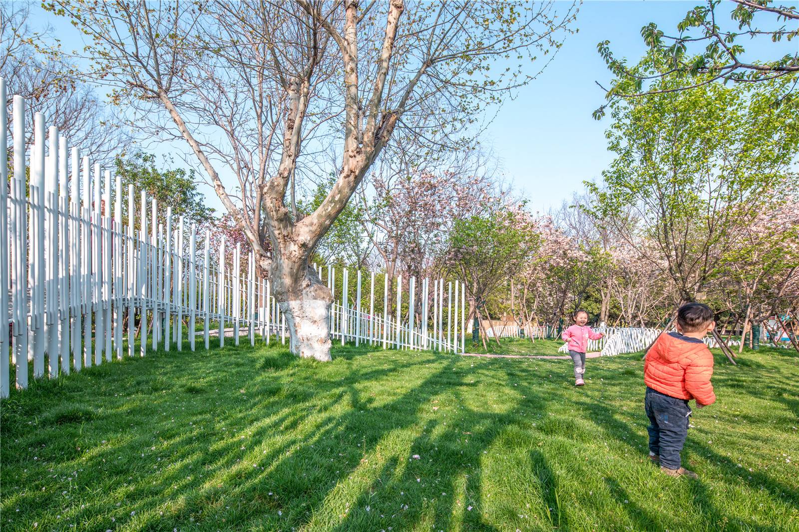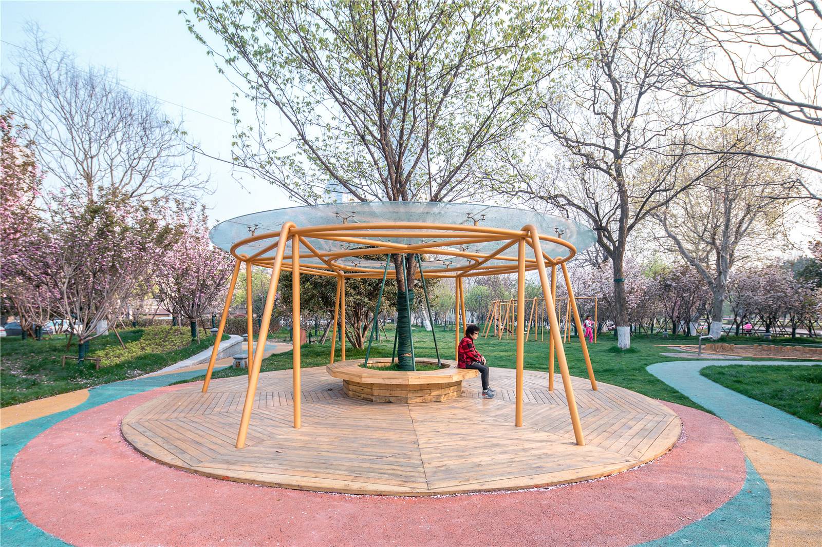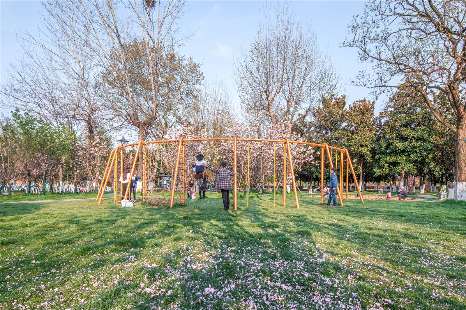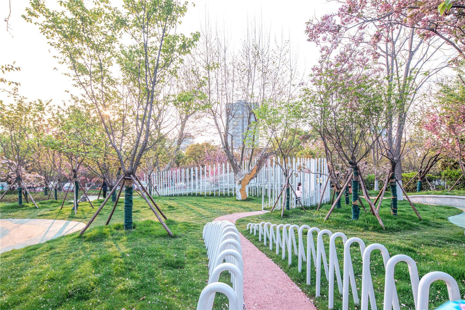 Cherry blossoms for tourists have already become a city card in Wuhan,UAO's new work "cherry blossom garden" was expanded on one side of the original cherry blossom garden.The construction site was an abandoned children's playground before. Party A was initially seeking to expand the original cherry garden, doubling the size of the original cherry garden to meet the growing demand for cherry blossoms of tourists.
