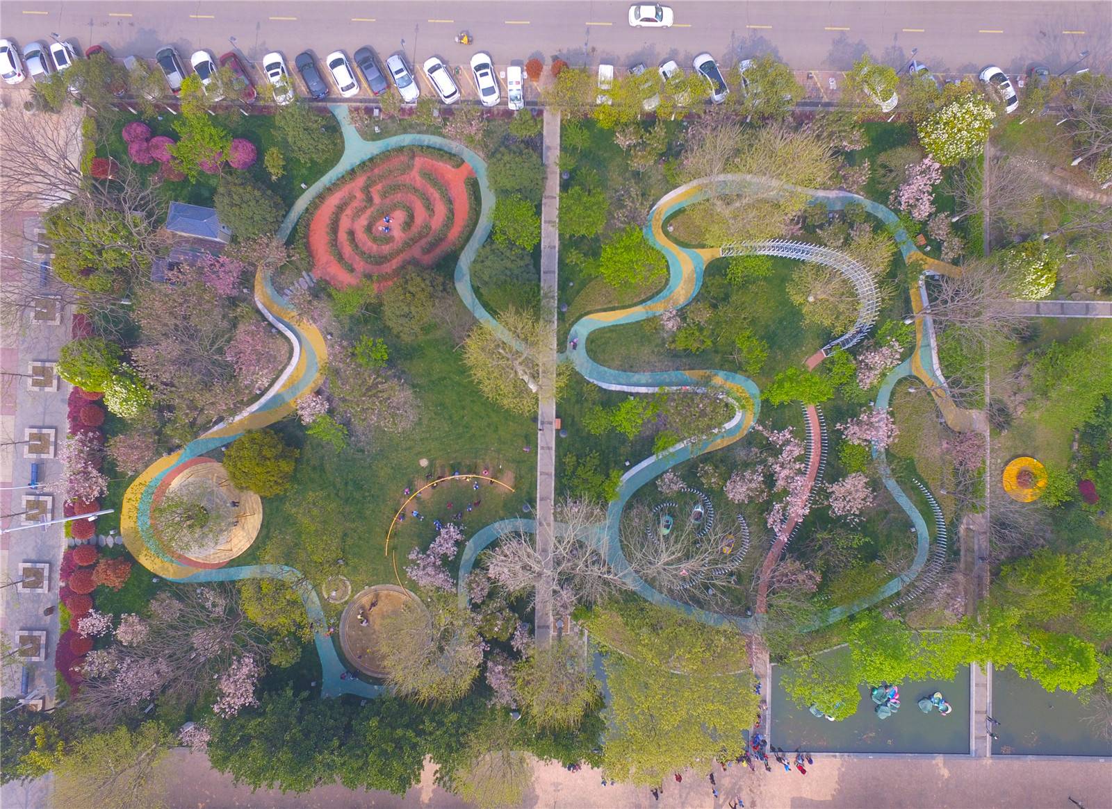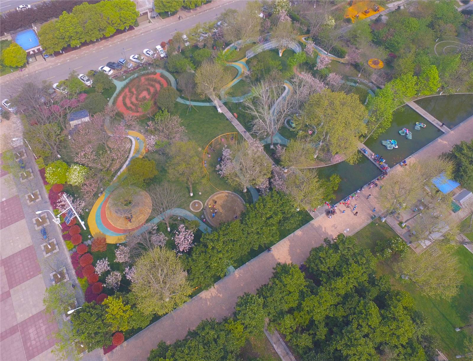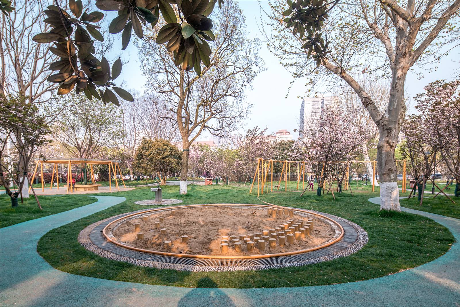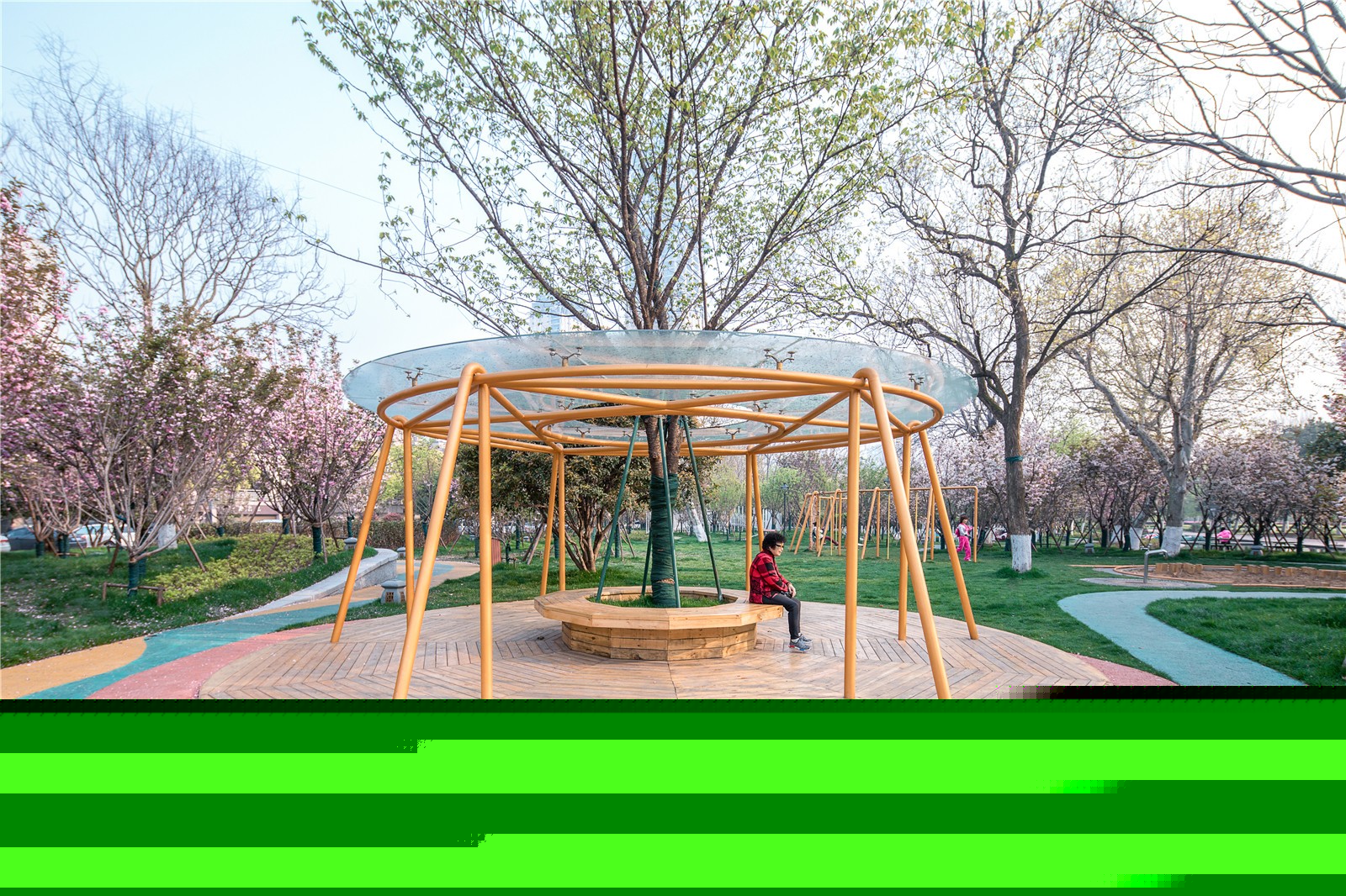 Cherry blossoms for tourists have already become a city card in Wuhan,UAO's new work "cherry blossom garden" was expanded on one side of the original cherry blossom garden.The construction site was an abandoned children's playground before. Party A was initially seeking to expand the original cherry garden, doubling the size of the original cherry garden to meet the growing demand for cherry blossoms of tourists.