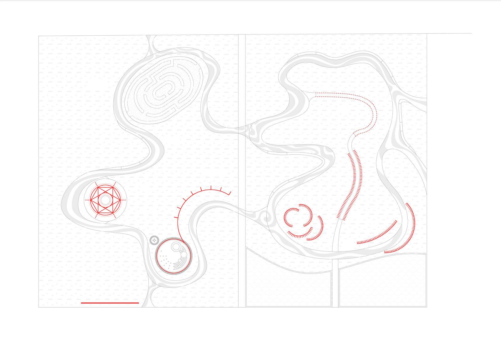 At the beginning, UAO team made statistics and classifications of all the current status, and combined the available original rods into a new one.This project contains two units: one is to use a long rod around a few remained trees in the field,to form a multilayer corridor system for children; The other is the use of shorter rods, mainly to combine 1.25-meter-long lateral rods into a maze.It takes full account of children's behavior habits: chasing, tireless running, hiding cats and other patterns of behavior detection.