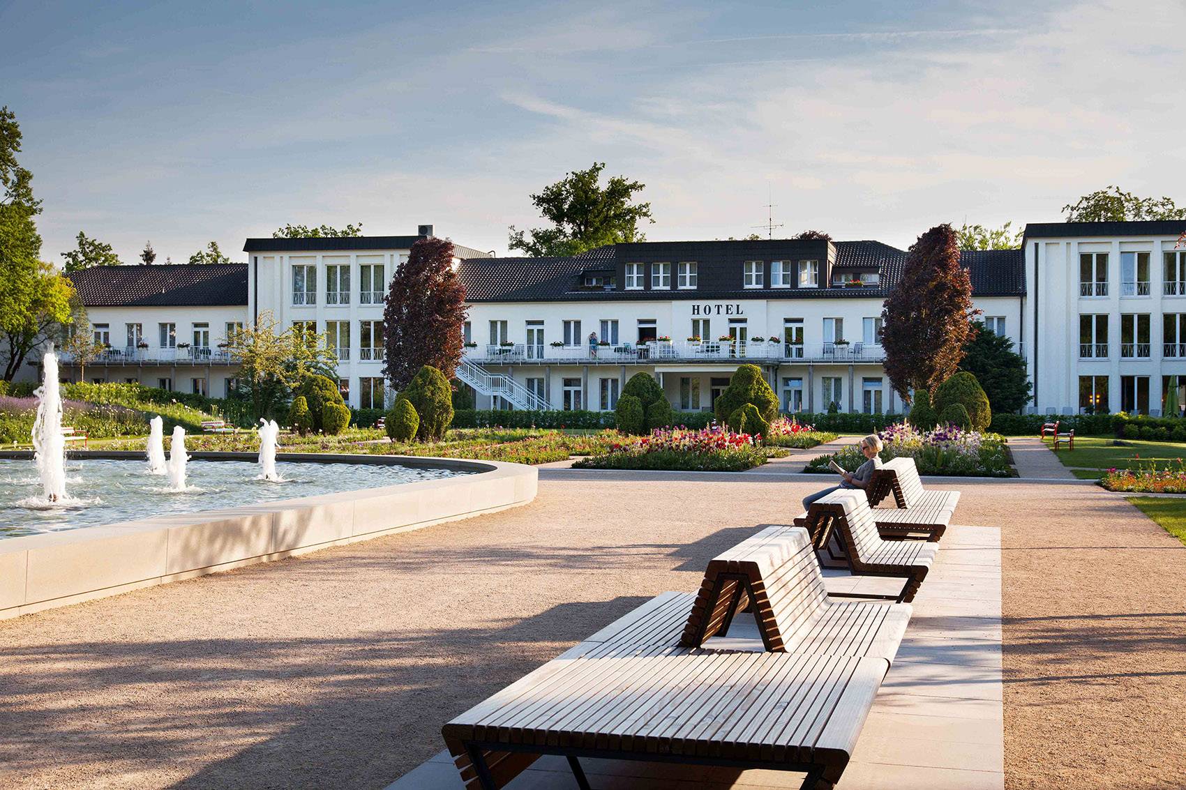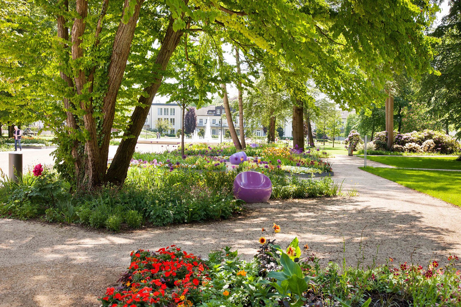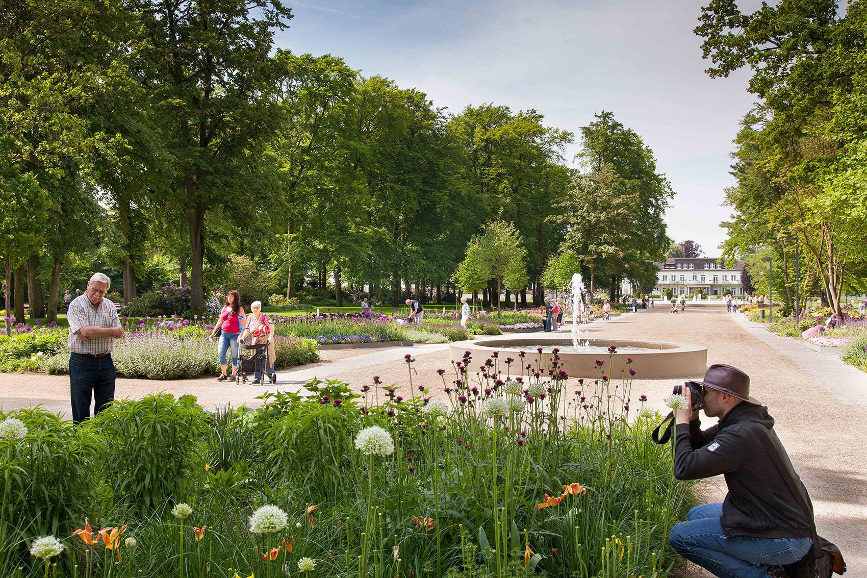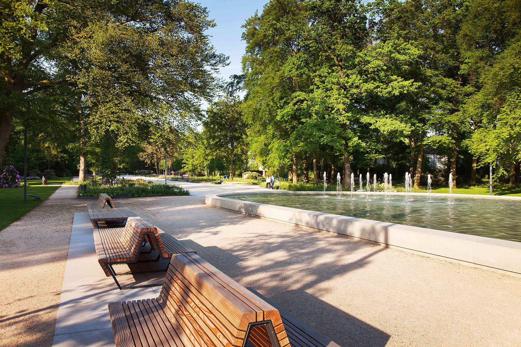 The central Axis of the existing ?Kurpark“ was reinterpreted with a new contemporary design – while maintaining the historical course of the path. Two axis extend the idea of the ?Kurpromenade“ toward the north and east. In the centre of the park the existing water basin was extended and contains fountains. The water basin with it’s surrounding square leads to a 2-lane promenade lined with spectacular perennials and seating below old trees.
