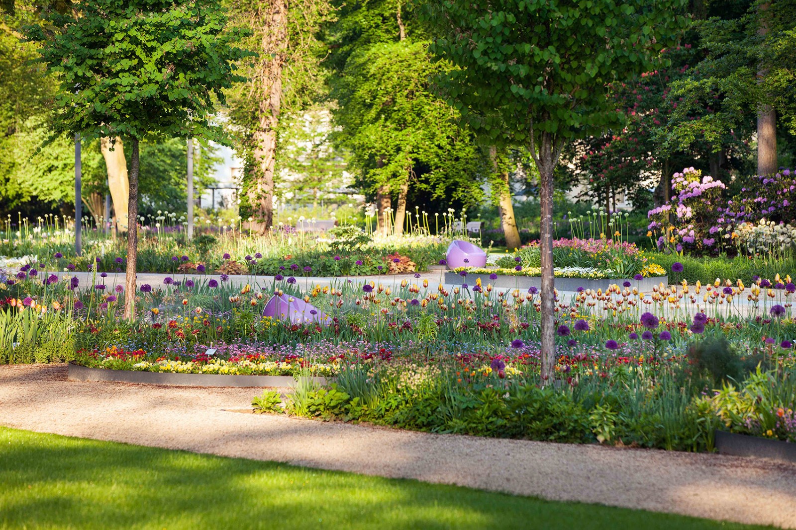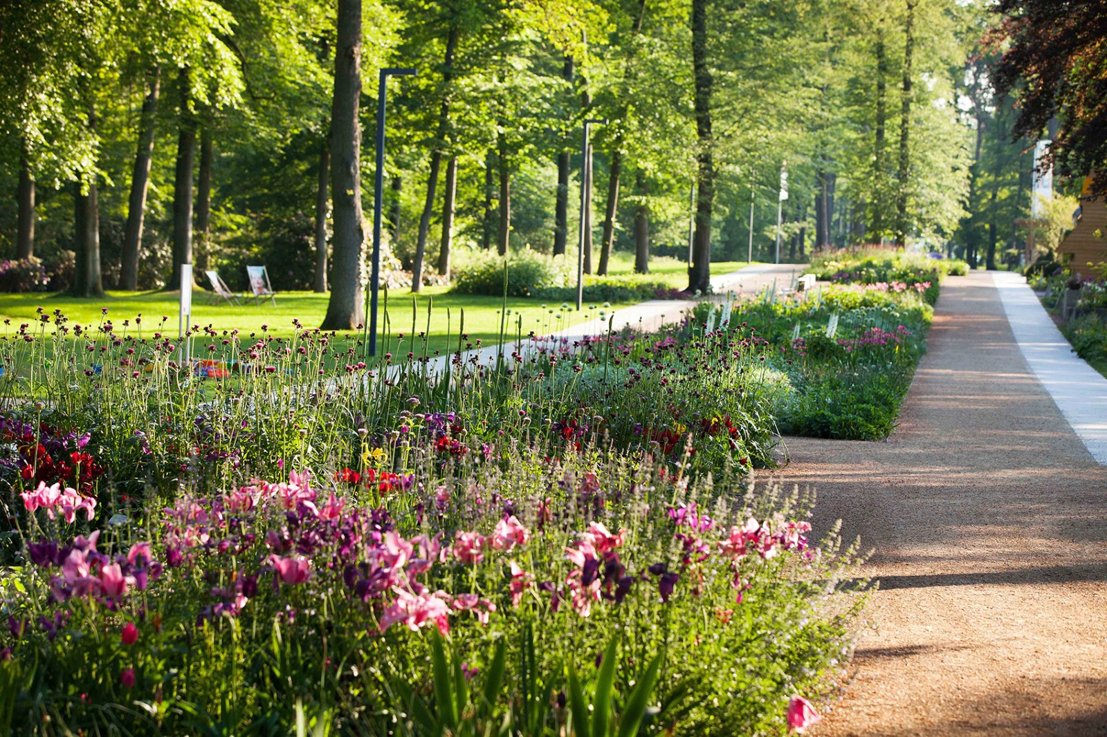 Towards the north and the east of the park the perennials gradually become more simple and natural. The number of enduring perennials, with a tendency to merge with the forest increases towards these more natural areas. The nonperennial planting of the central area of the park will form a continuous floral display.