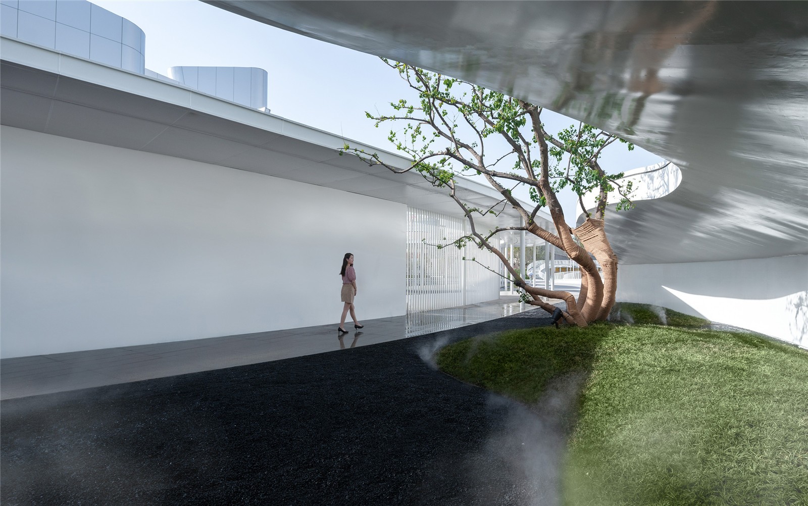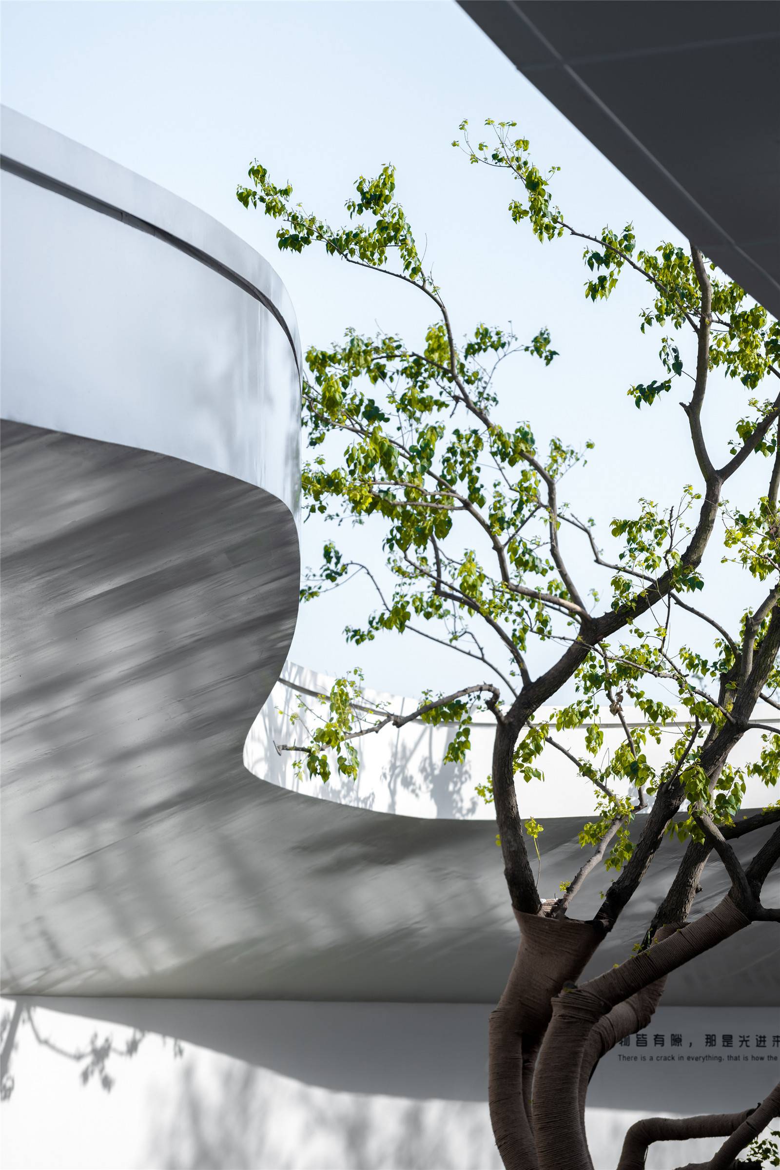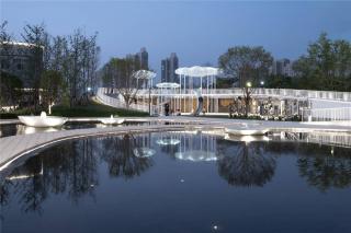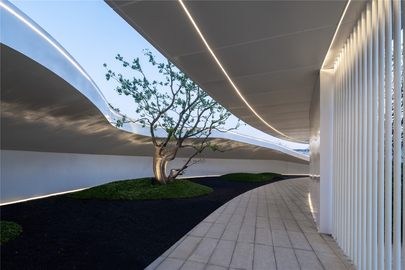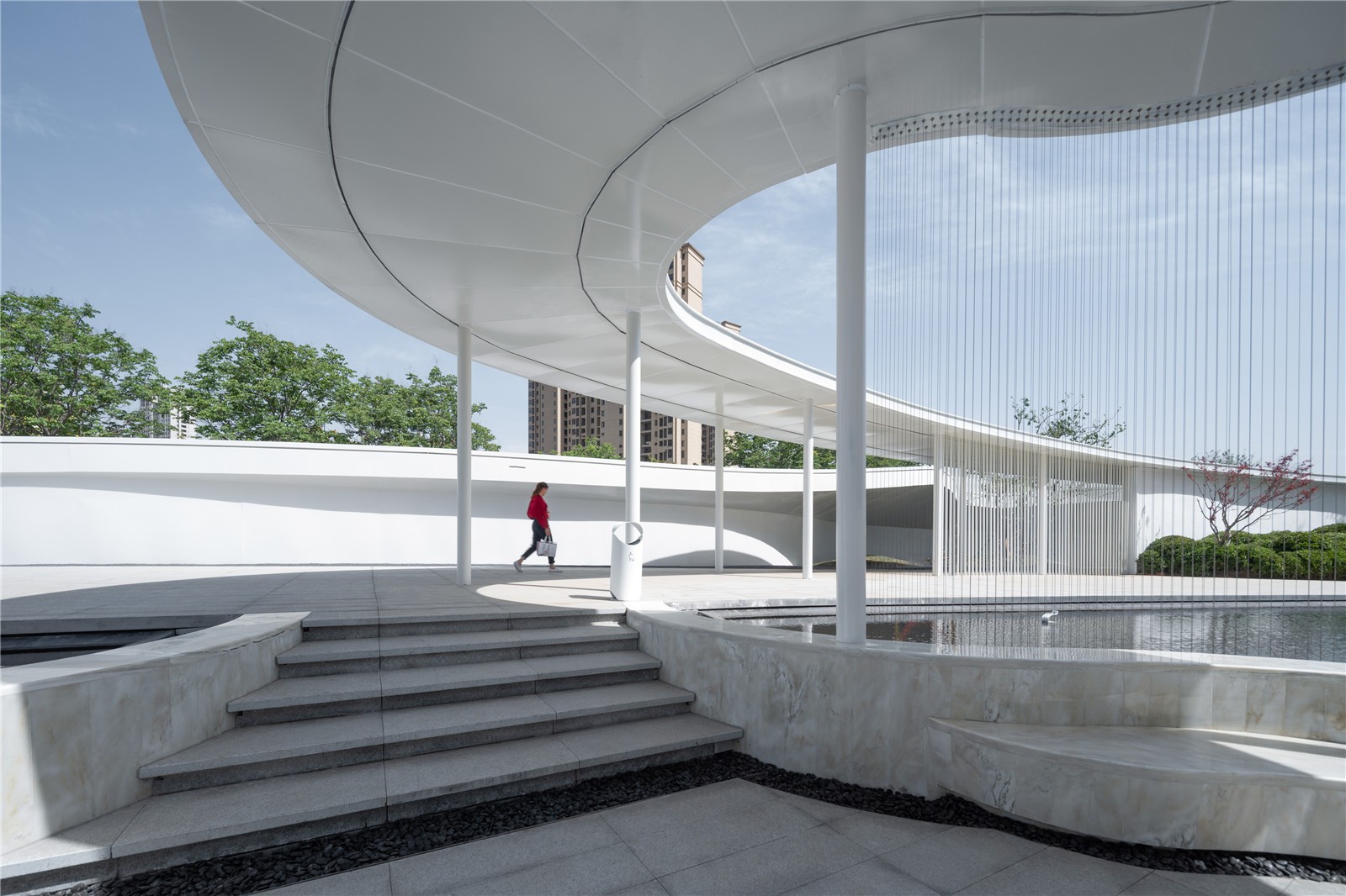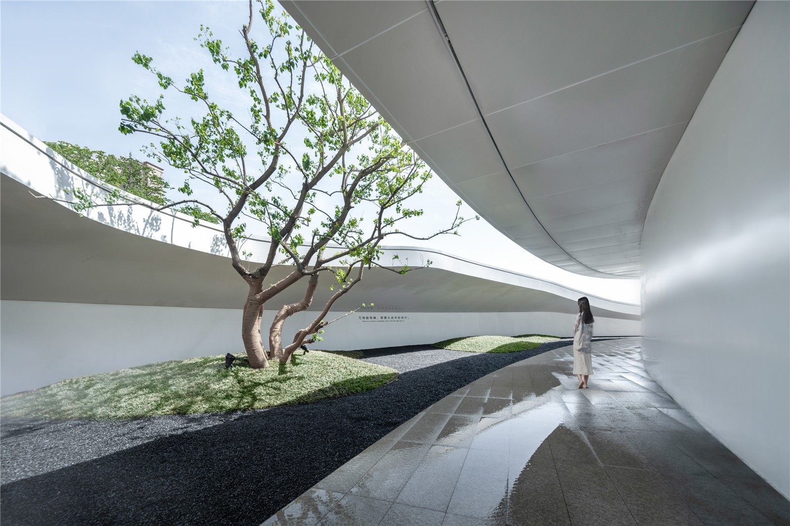 The quiet and elegant water shadow space, an elegant arc walks in the space, the con-tinuity and ornamental of the venue can be extended, and it also gives the space a strong guidance. There is a little starlight in the pool. The waves of the water, and the color of the trees reflected on the buildings and the landscape wall... The skyline is occasionally slanted with branches, revealing the landscape of a large urban sky. En-couraging thoughts and images, like inviting thoughts and images Thousands, It's like playing a color silent film.