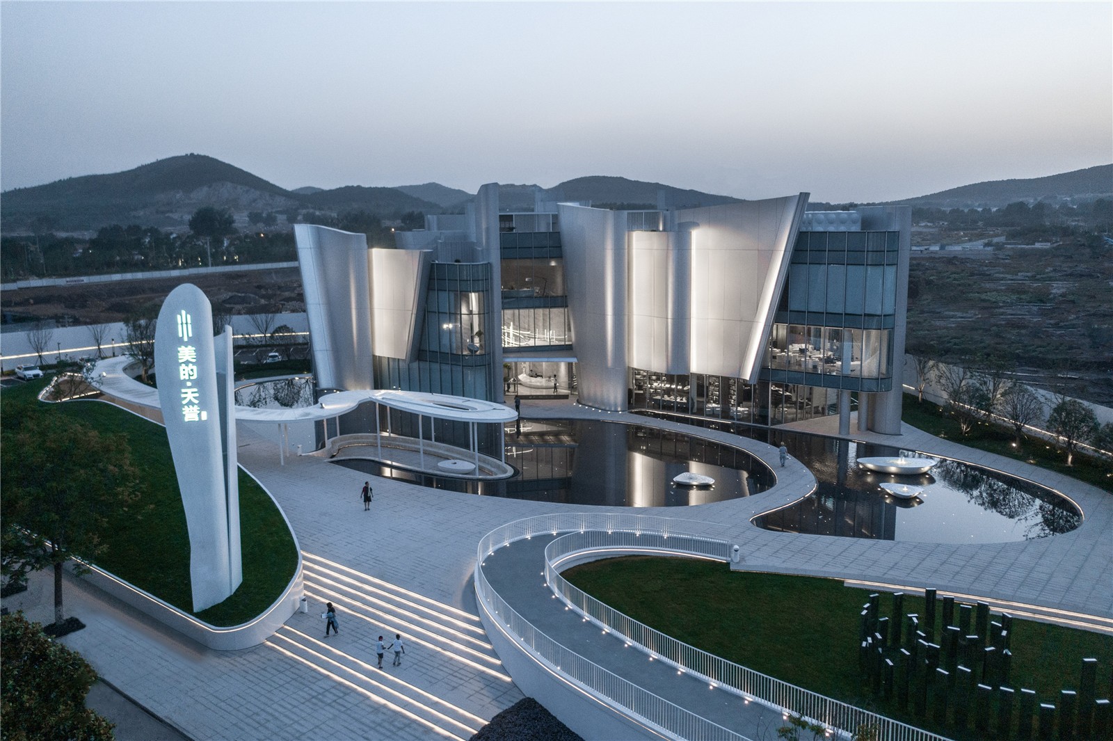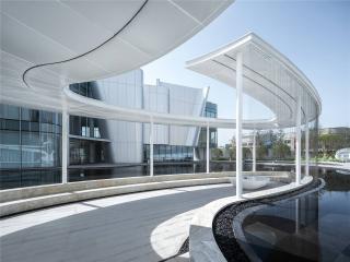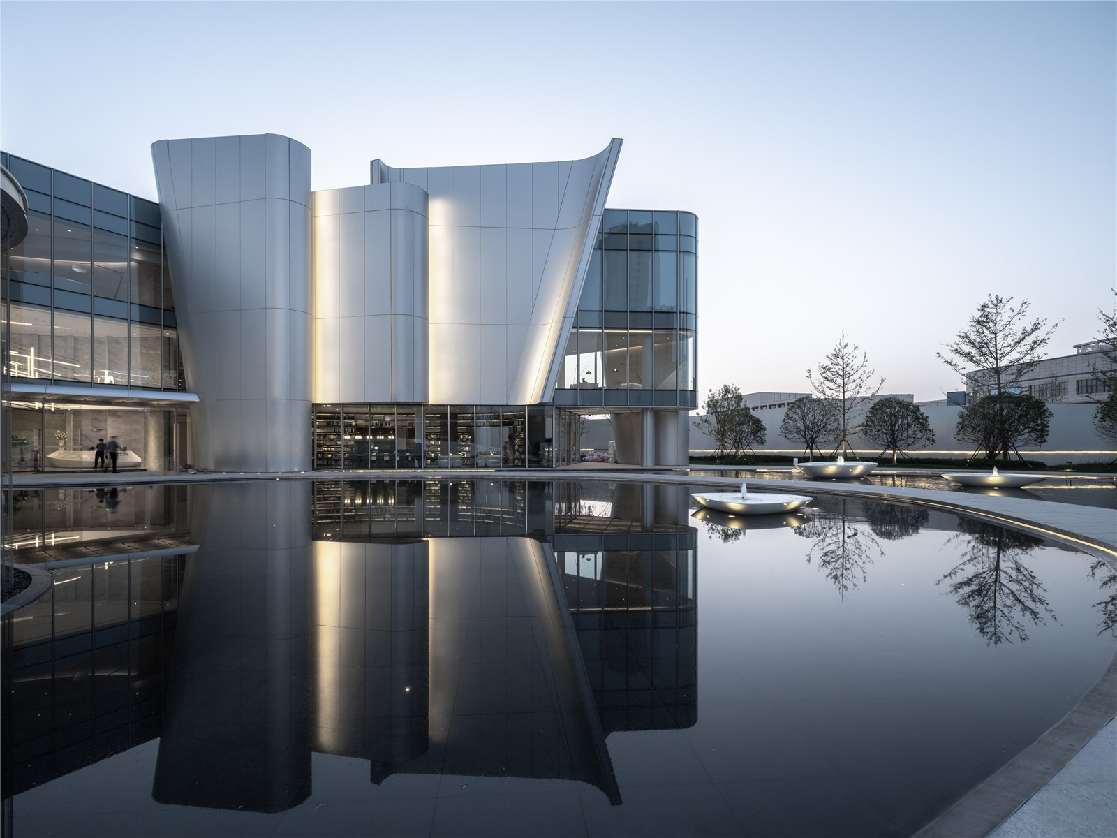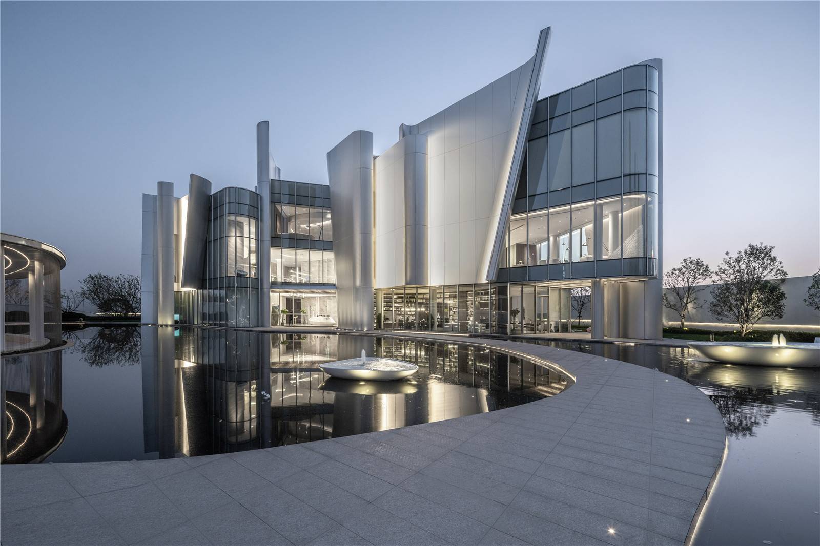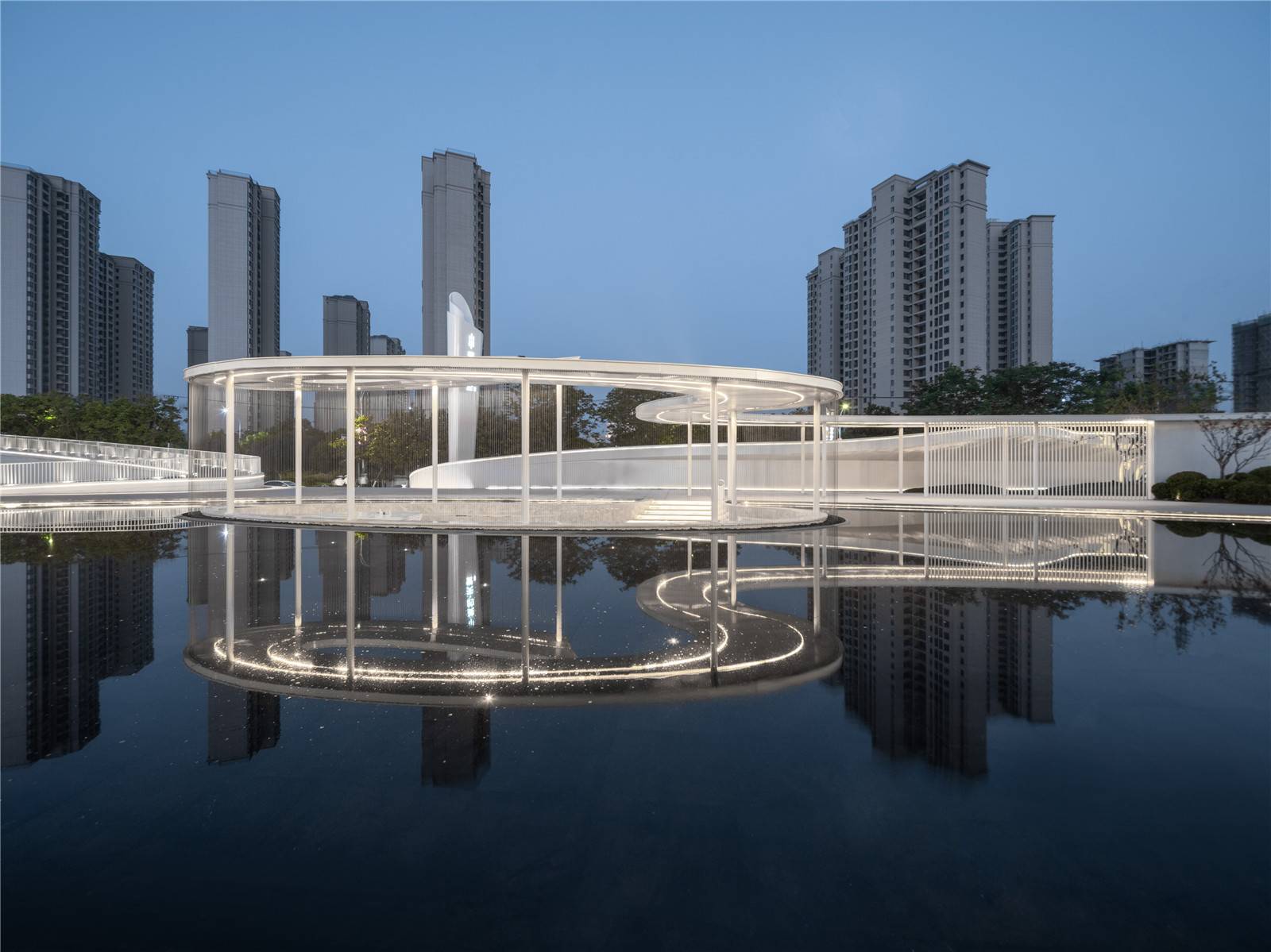 The quiet and elegant water shadow space, an elegant arc walks in the space, the con-tinuity and ornamental of the venue can be extended, and it also gives the space a strong guidance. There is a little starlight in the pool. The waves of the water, and the color of the trees reflected on the buildings and the landscape wall... The skyline is occasionally slanted with branches, revealing the landscape of a large urban sky. En-couraging thoughts and images, like inviting thoughts and images Thousands, It's like playing a color silent film.
