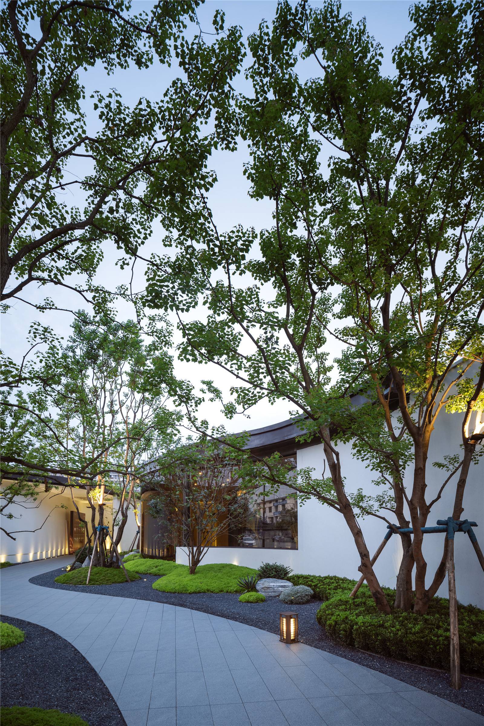 融青城山場景記憶于林間路旁,將原生銀杏樹還原與此,試圖找尋到場地最初的原生之美