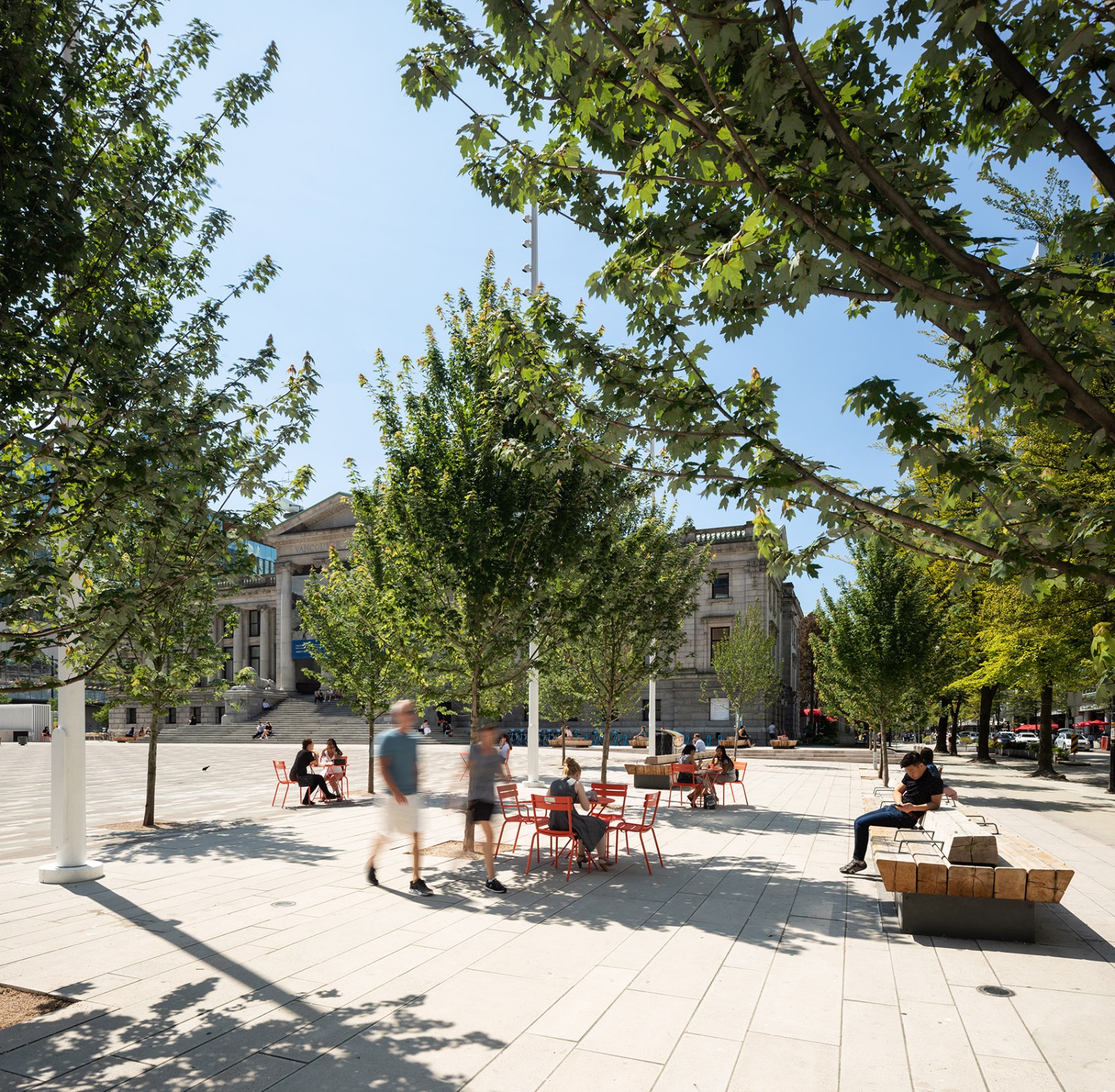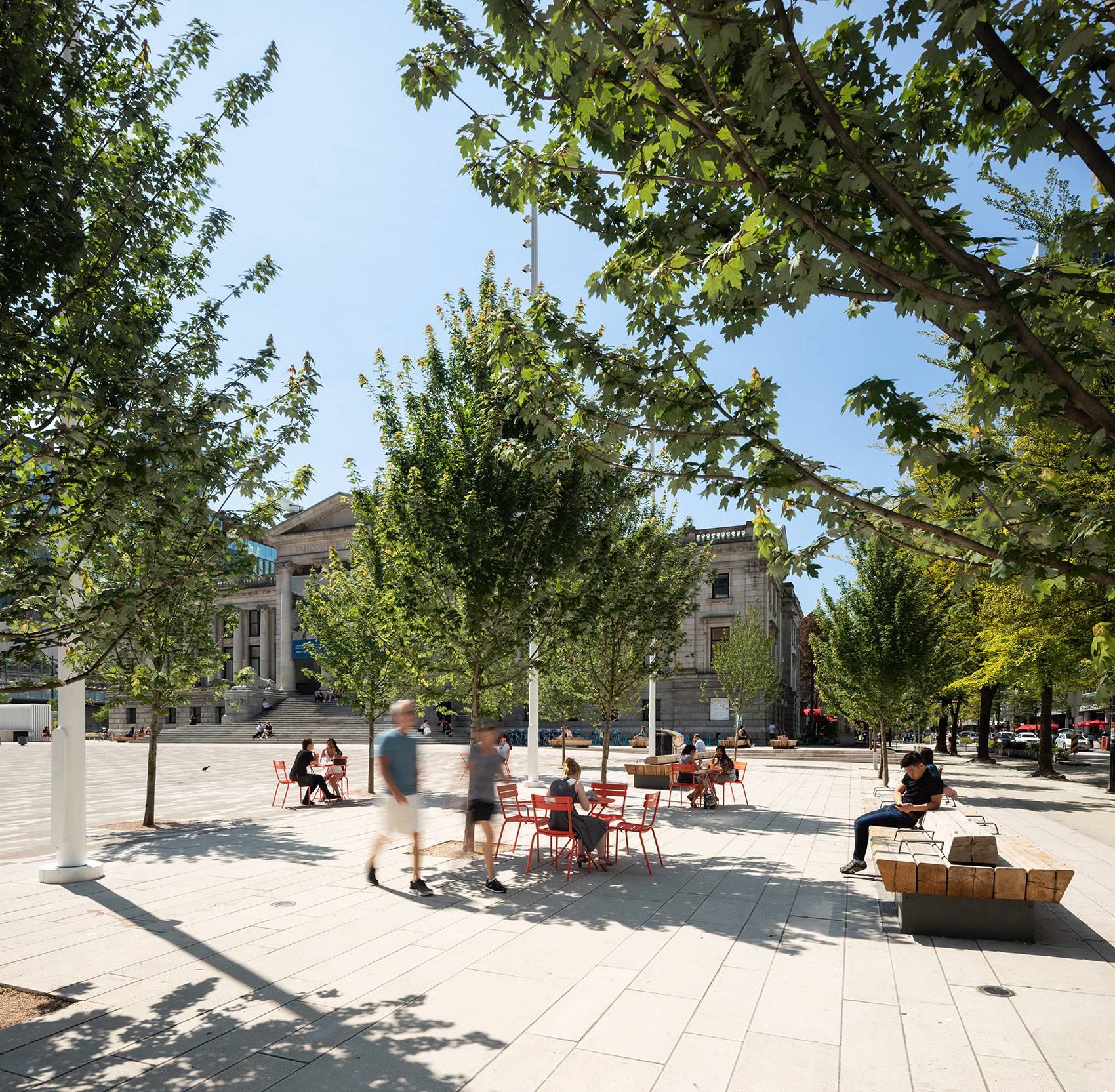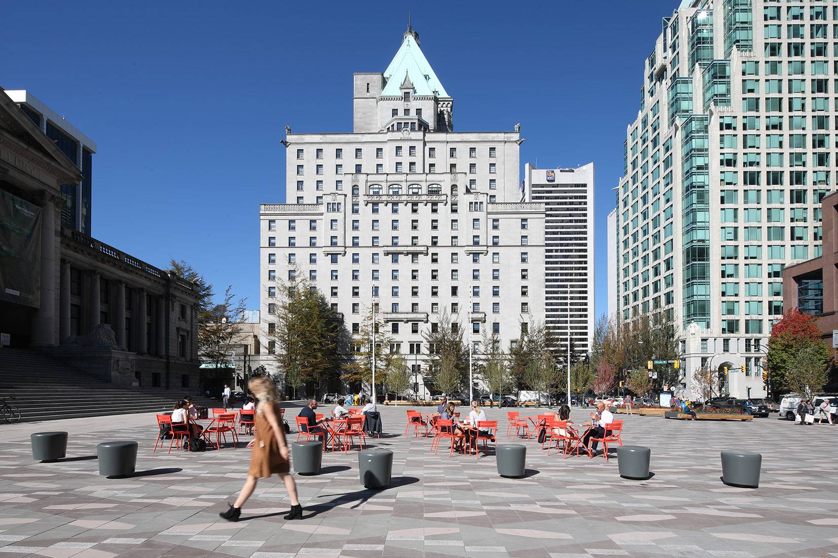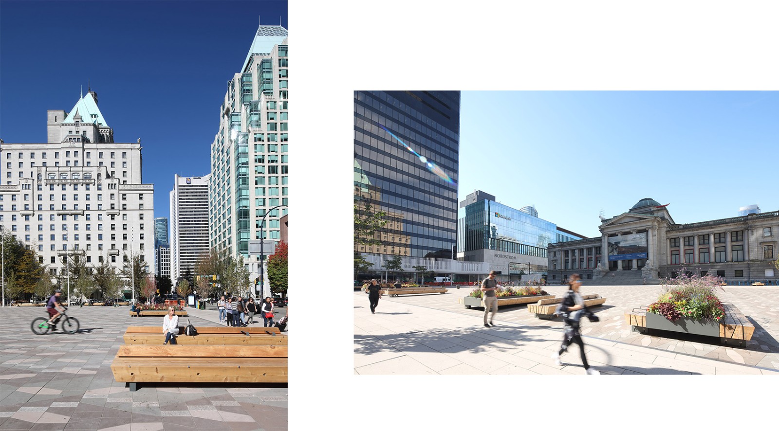 In the heart of Vancouver’s former ceremonial boulevard, sat a large, dilapidated space. The usage evolution – from forecourt to Provincial Court Building to the formerly named Vancouver Art Gallery North Plaza – had rendered the site a palimpsest of monuments, trees, and an assortment of paving and seating elements. Despite its run-down state, the plaza’s size and central downtown location meant it was nonetheless frequented for large planned events, commuting, and meeting. The muddled placemaking gave way to a lacklustre setting, one that was sorely misaligned with its vibrant occupants. To us, democratizing public space for various displays of civic expression is the embodiment of a successful public realm.