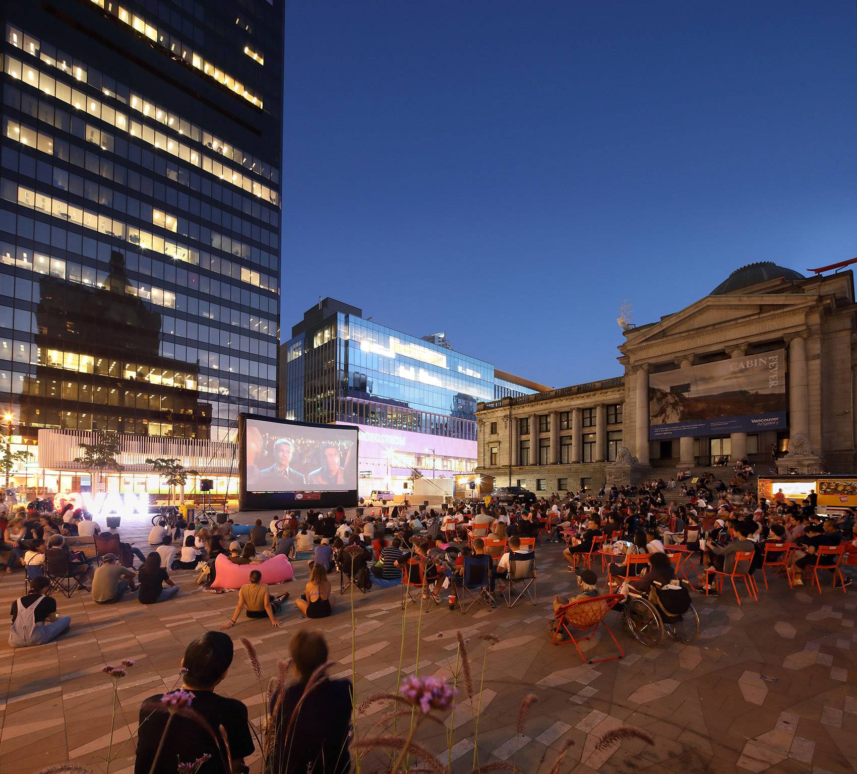 From the ancient acropolis to the 21st Century cosmopolis, the primary characteristic of great plazas has remained constant: vibrant public activity. The rigorous research concluded that to improve functionality for specific programmatic demands, the plaza needed to have a clear, open centre. Through meaningful and rigorous public consultation, we received overwhelming support to remove the large fountain and the melange of existing trees, making room for a unifying design strategy with key infrastructure at the peripheries. An important ceremony recently saw the plaza renamed ?x????n?q Xwtl’e7én? Square in honour of collaborative efforts between First Nations and the City.