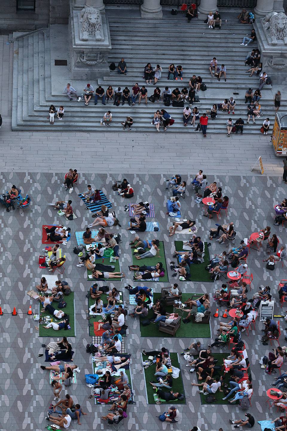 在溫哥華曾經(jīng)的禮儀大道的中心,有一個(gè)巨大卻遭到荒廢的空間。從地方法院大樓前院到后來(lái)的溫哥華藝術(shù)館北廣場(chǎng),用途的演變使該場(chǎng)地逐漸變成了一個(gè)由紀(jì)念碑、樹木和各類鋪裝及座椅元素構(gòu)成的簡(jiǎn)陋場(chǎng)所。雖然廣場(chǎng)處于破敗的狀態(tài),但其規(guī)模與城市中的核心位置使其依舊常常被用于舉辦大型活動(dòng)、通勤和集會(huì)等?;靵y的場(chǎng)所營(yíng)造使廣場(chǎng)的環(huán)境顯得毫無(wú)生機(jī),與其活躍的使用者完全無(wú)法相配。對(duì)于設(shè)計(jì)團(tuán)隊(duì)而言,將公共空間民主化,使其能夠滿足多樣化的城市表達(dá),是塑造成功的公共領(lǐng)域的重要體現(xiàn)。