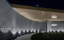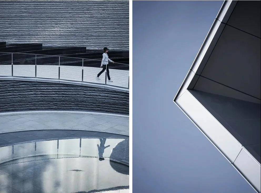 不同的材料選型在場景里傳遞著不同的情緒體驗,石材的師法自然、混泥土的流動冥想、玻璃的朦朧靜謐、金屬的剛毅堅韌,木材的婉約溫潤。在陰天居多的重慶,選擇能夠創(chuàng)造更多光影變化的材質(zhì),比如折形U玻幕墻,保留U玻溫婉細膩的氣質(zhì)同時強化層次與質(zhì)感;抽象水波紋的GRC幕墻同樣強化了靈動的山水韻味。