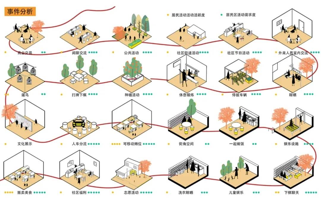 ▲事件分析,設(shè)計分析圖:關(guān)于居民在街道中的所發(fā)生的多種多樣的事件的分析