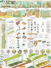 作品重點在于居民區(qū)生活景觀更新。提供了詳實的現(xiàn)狀分析和數(shù)據(jù)分析;作品給出了合理可信的解決方案嘗試;但是圖面信息量非常大,在版面規(guī)劃上缺少了一點hierarchy。
