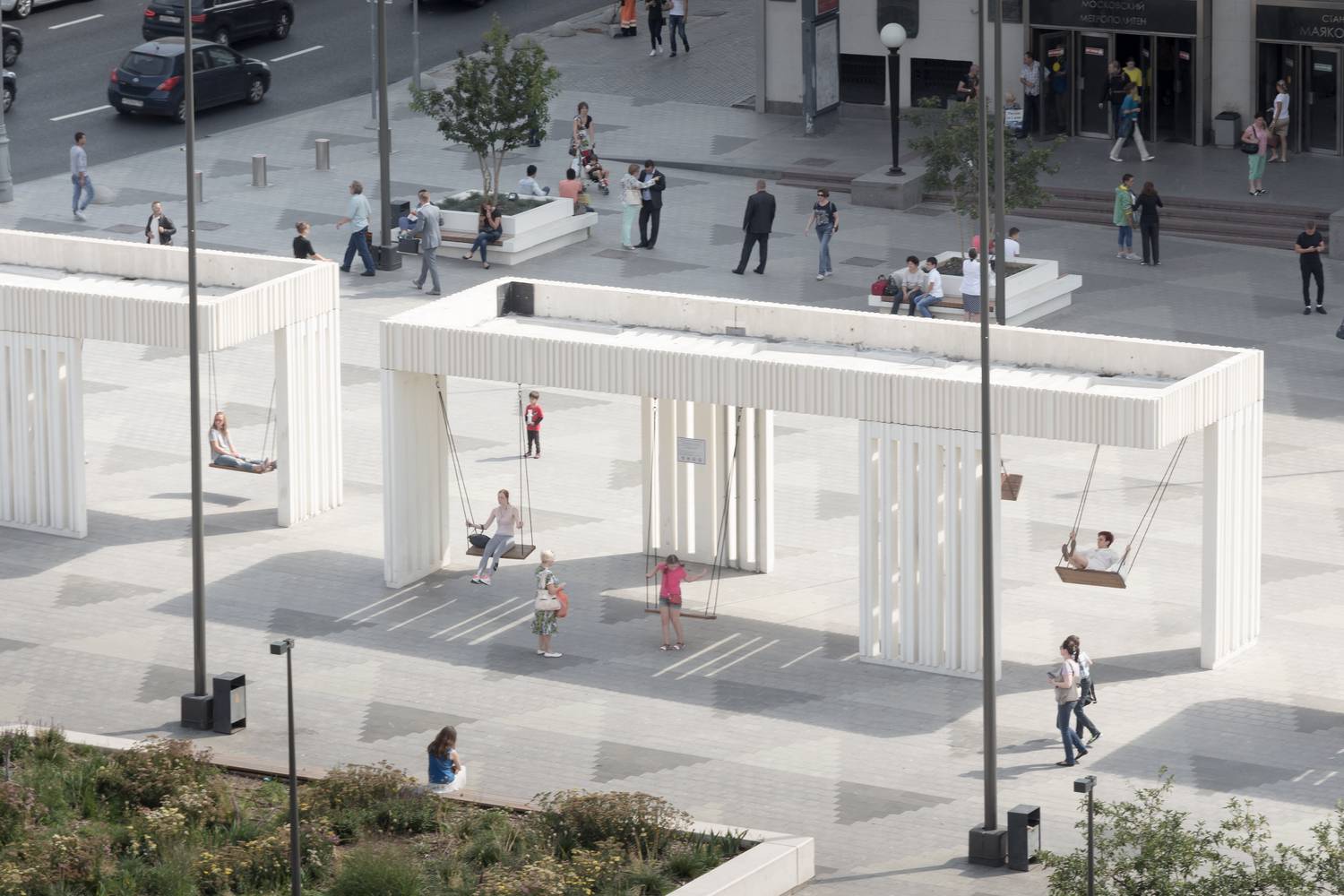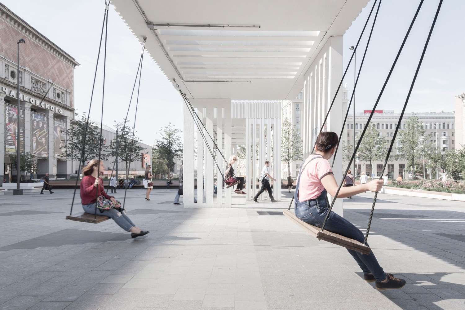 莫斯科成功廣場是2015年交付使用的。從空間上看,它已經(jīng)變成了一個停留空間,這里總是充滿了人,人們在此約會,喝咖啡,聽音樂,滑板,vapers,演奏家。 這讓它很快就變得非常受歡迎,在夏季或冬季的任何時間里,這里的莫斯科人都會排著隊使用秋千。