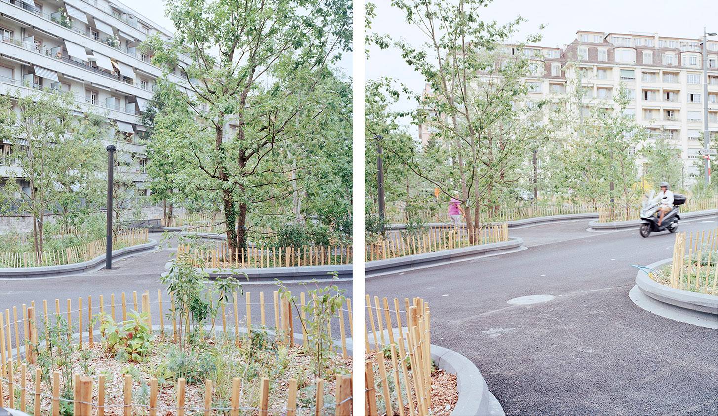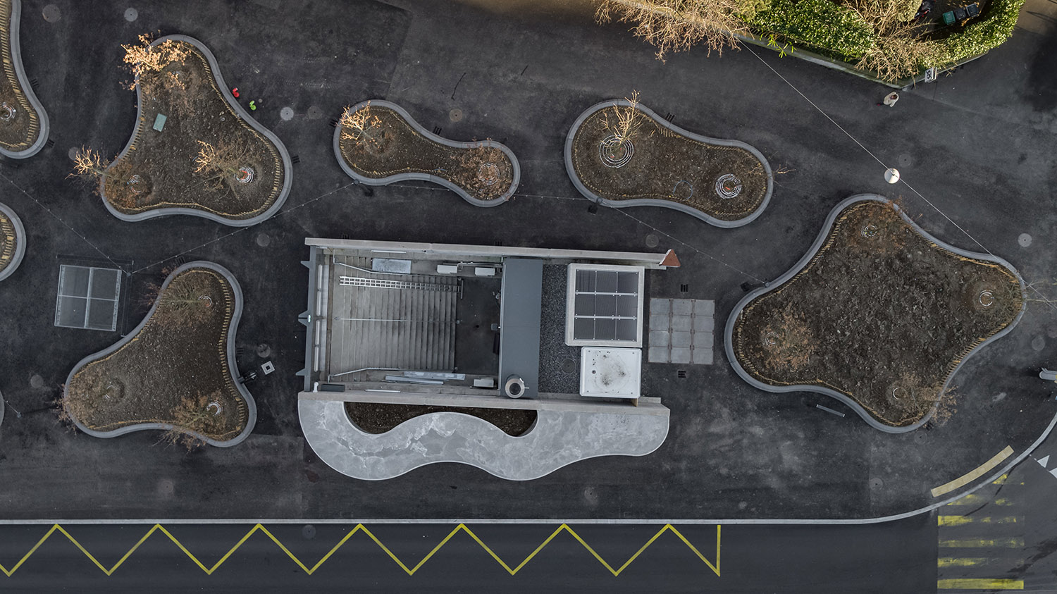 ▲與綠島結(jié)合的公交車站,bus station integrated with the islands