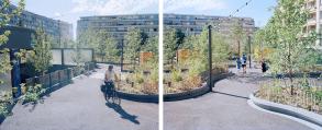 Area: 14’225 m2 gross, 9’656 m2 of public space, 2’416 m2 of planted surface