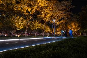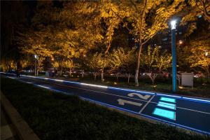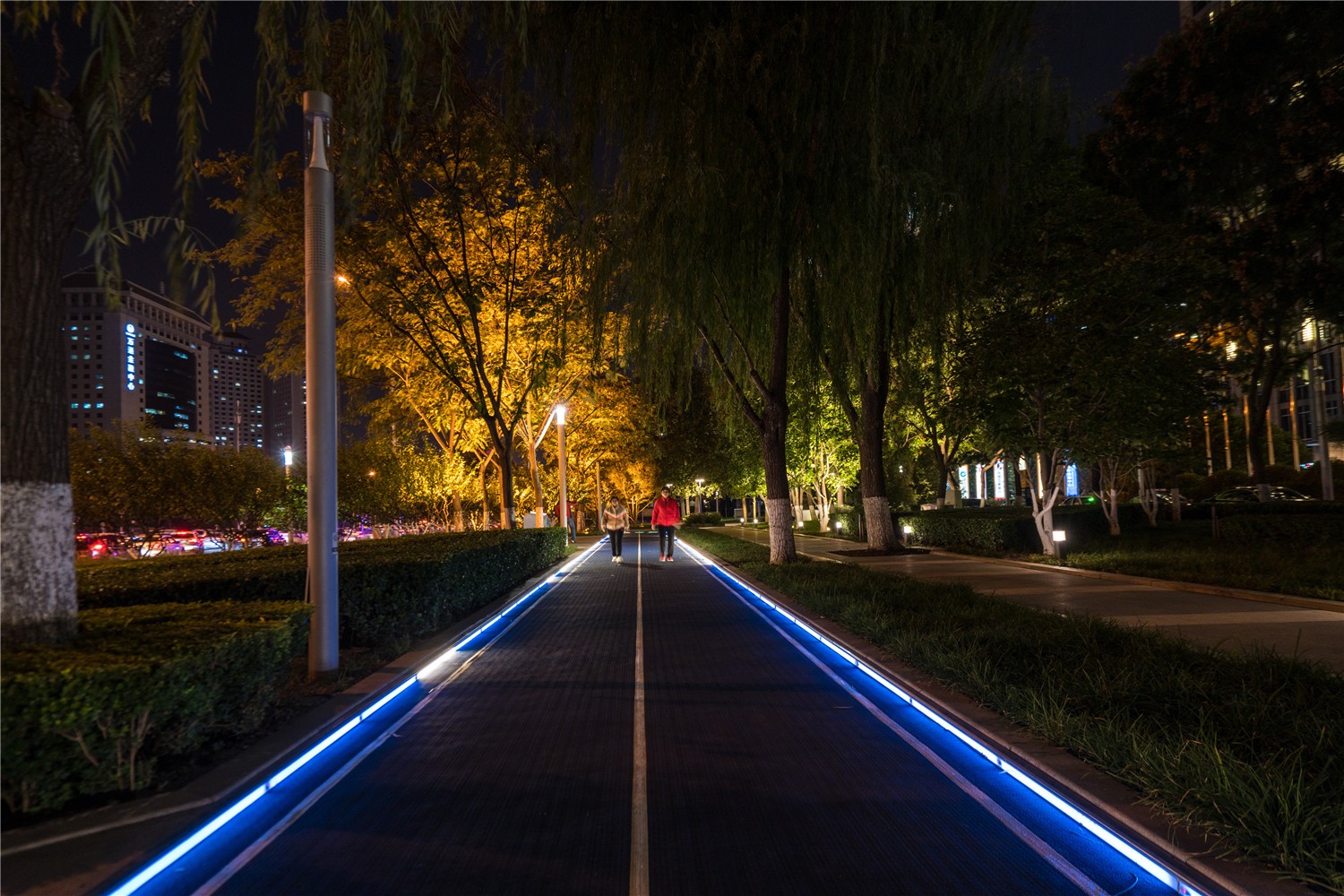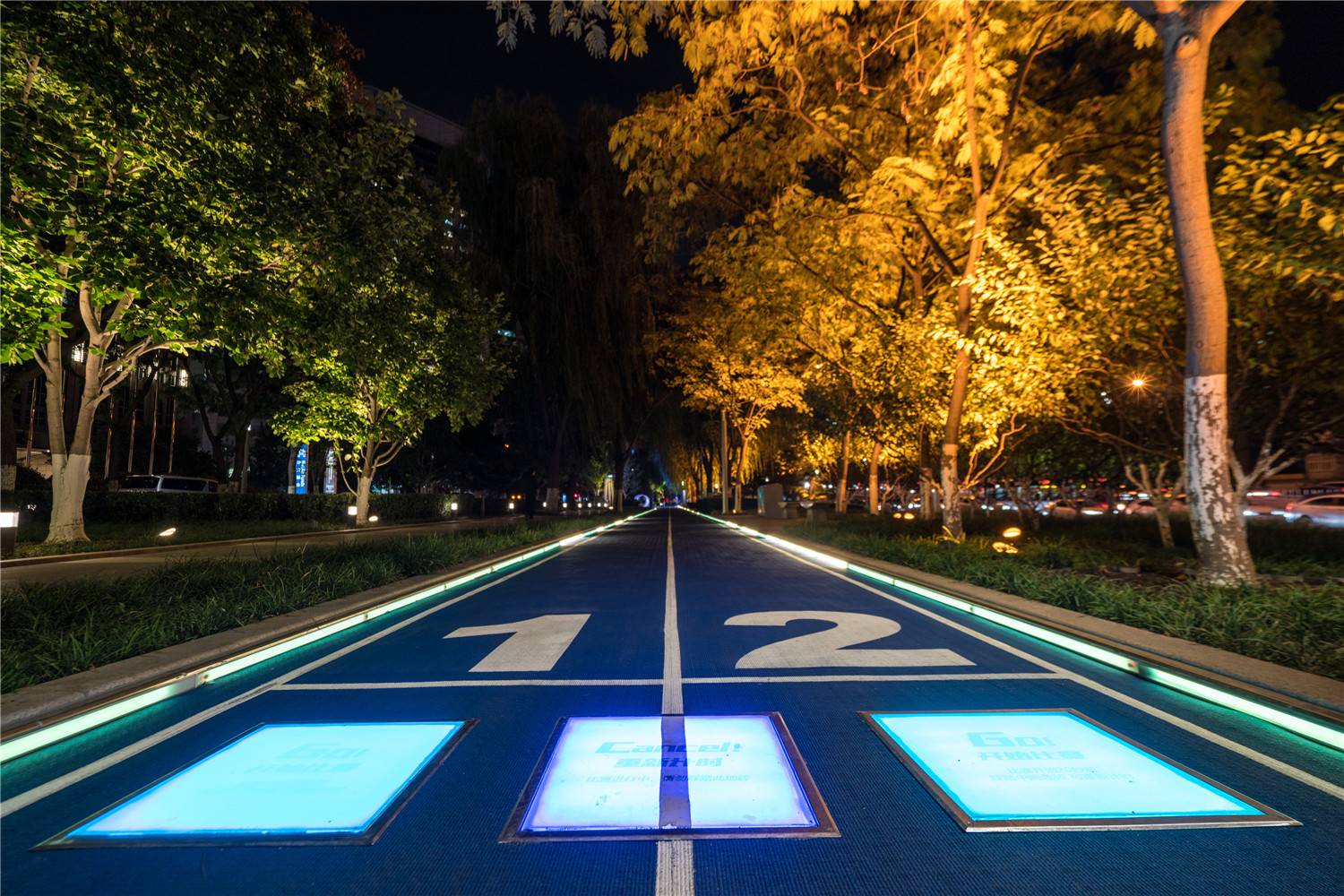在競速跑道區(qū)利用場地內(nèi)現(xiàn)有的3米寬120米長的園路設(shè)置兩條賽道,供雙人競速。在設(shè)計、園林、信息、交互、數(shù)碼藝術(shù)等等多專業(yè)跨界思維下,實現(xiàn)了包括自控起跑,跟蹤記速,感應(yīng)燈帶跟隨,人臉識別、會員成績累積、沖刺時刻攝影,以及大屏成績排名、速度計算播報等復(fù)合功能。設(shè)計集成了人臉識別、雷達測速、壓力感應(yīng)、速度感應(yīng)、嵌入式控制系統(tǒng)及相應(yīng)的邏輯光控軟件、多項控制軟件及服務(wù)系統(tǒng)開發(fā)。賽道會實時計算出跑者的均速和峰速,全程伴隨參與者的競速進度。在終點互動觸發(fā)后,參與者會收獲完成競速時的掌聲與歡呼,競速成績也會同步播報在終點的LED大屏幕上,并進行綜合排名。經(jīng)常前來參與的優(yōu)速選手,還會以常態(tài)出現(xiàn)在總擂榜上。