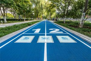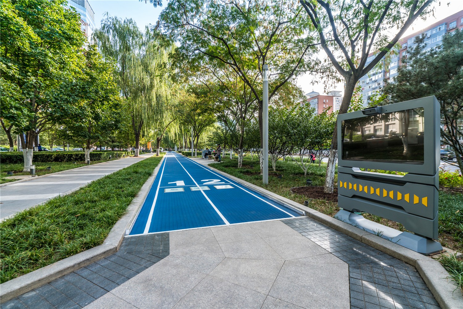 充分挖掘改造項目的場地空間潛力,劃分出百米互動競速賽道及動感健身車兩個獨立的聯(lián)動區(qū)域。