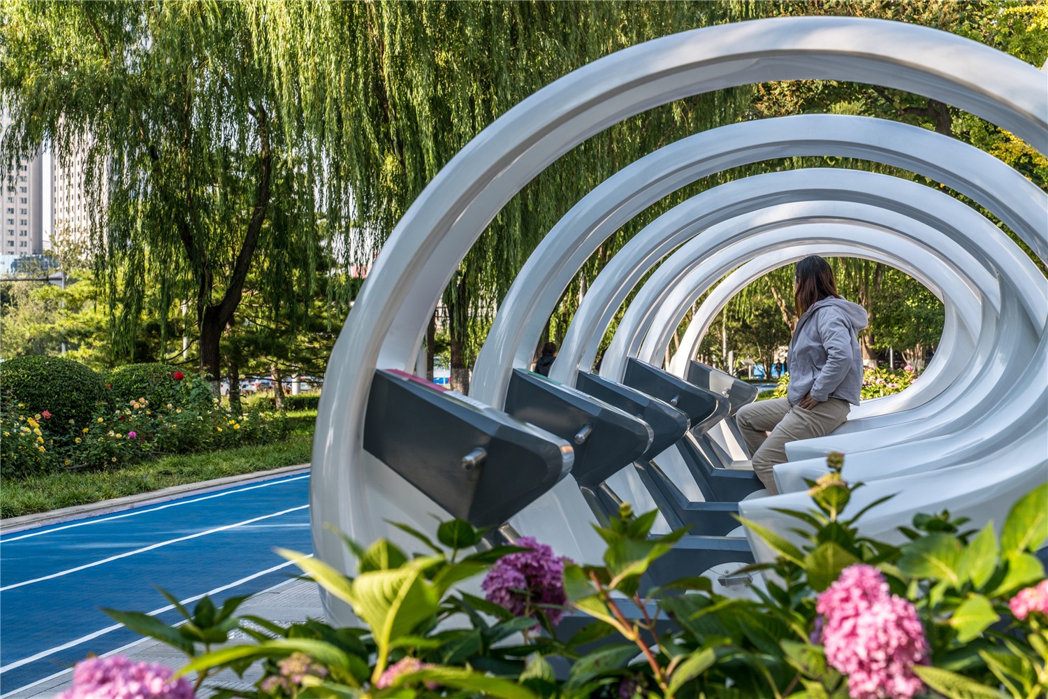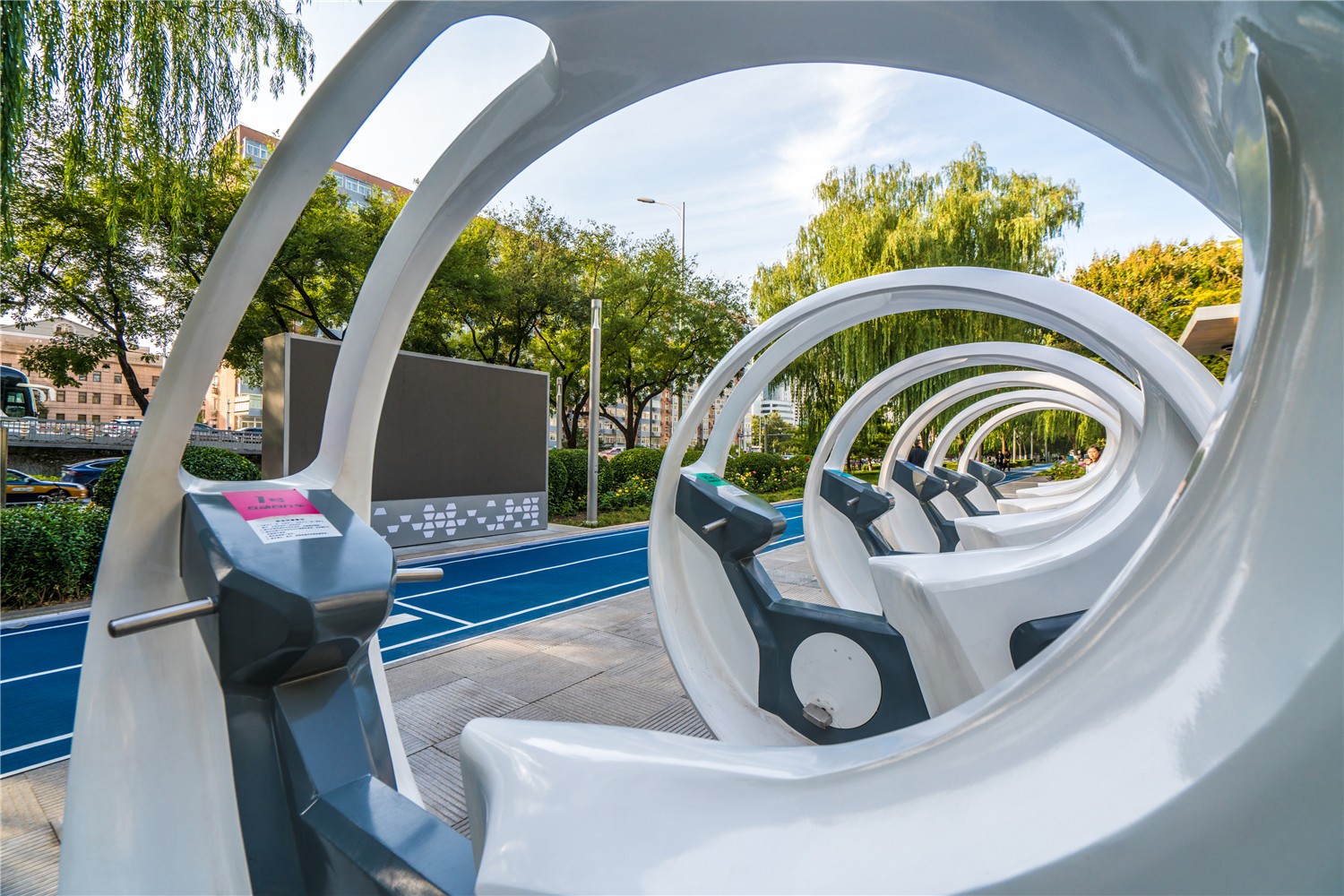 項目建成后,一度成為京城健身網(wǎng)紅打卡點,成為金融街片區(qū)最為活躍的社交空間,也奠定了有益身心的文娛計劃開展。日常也總有絡(luò)繹不絕的行人停下來、騎上車感受一番,更有晚餐后戴著耳機在自行車上一騎數(shù)十分鐘進行有氧運動的周邊工作人員和居民。
