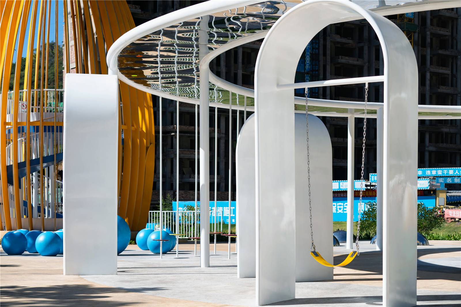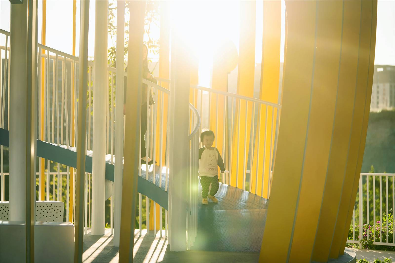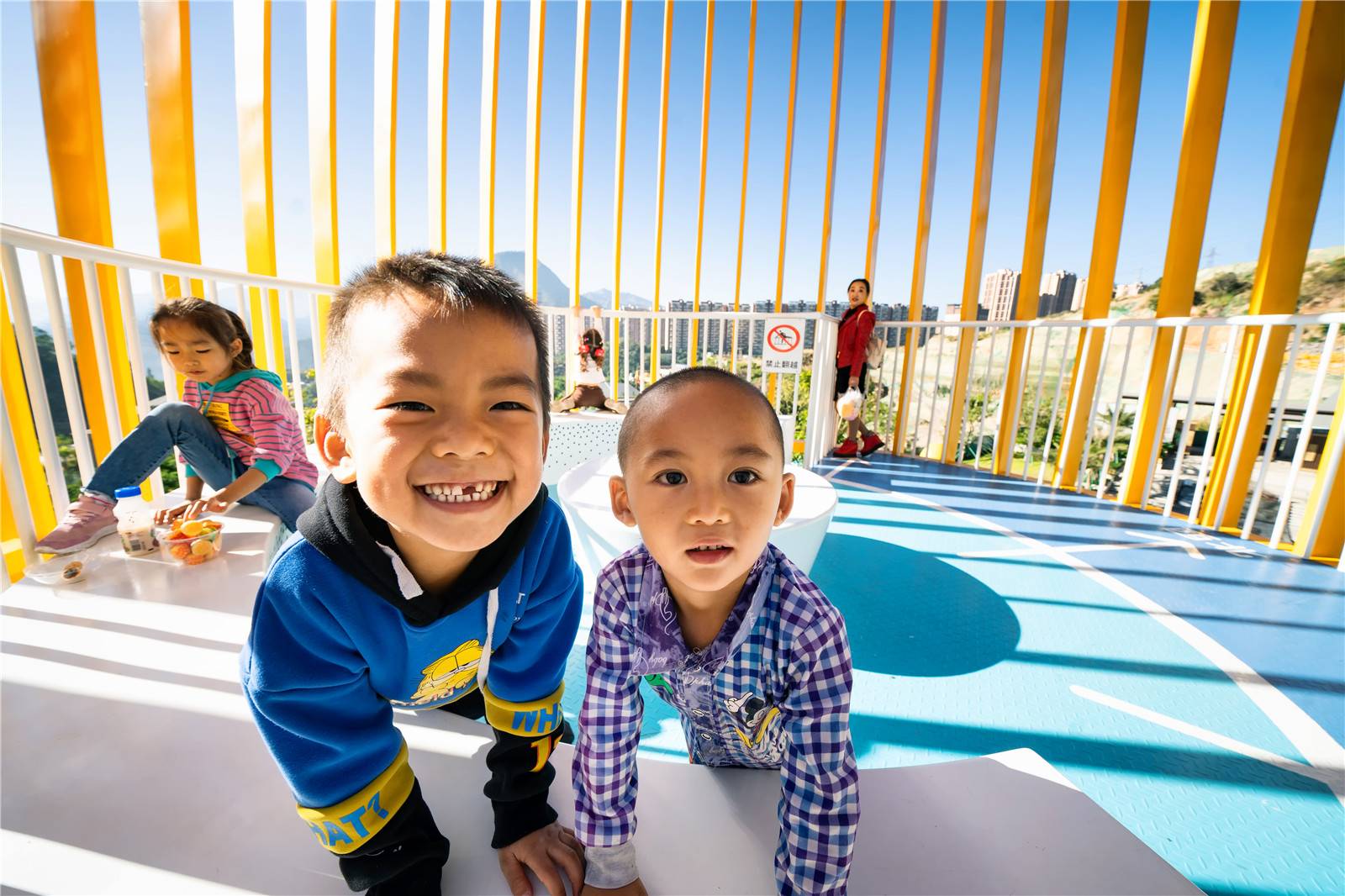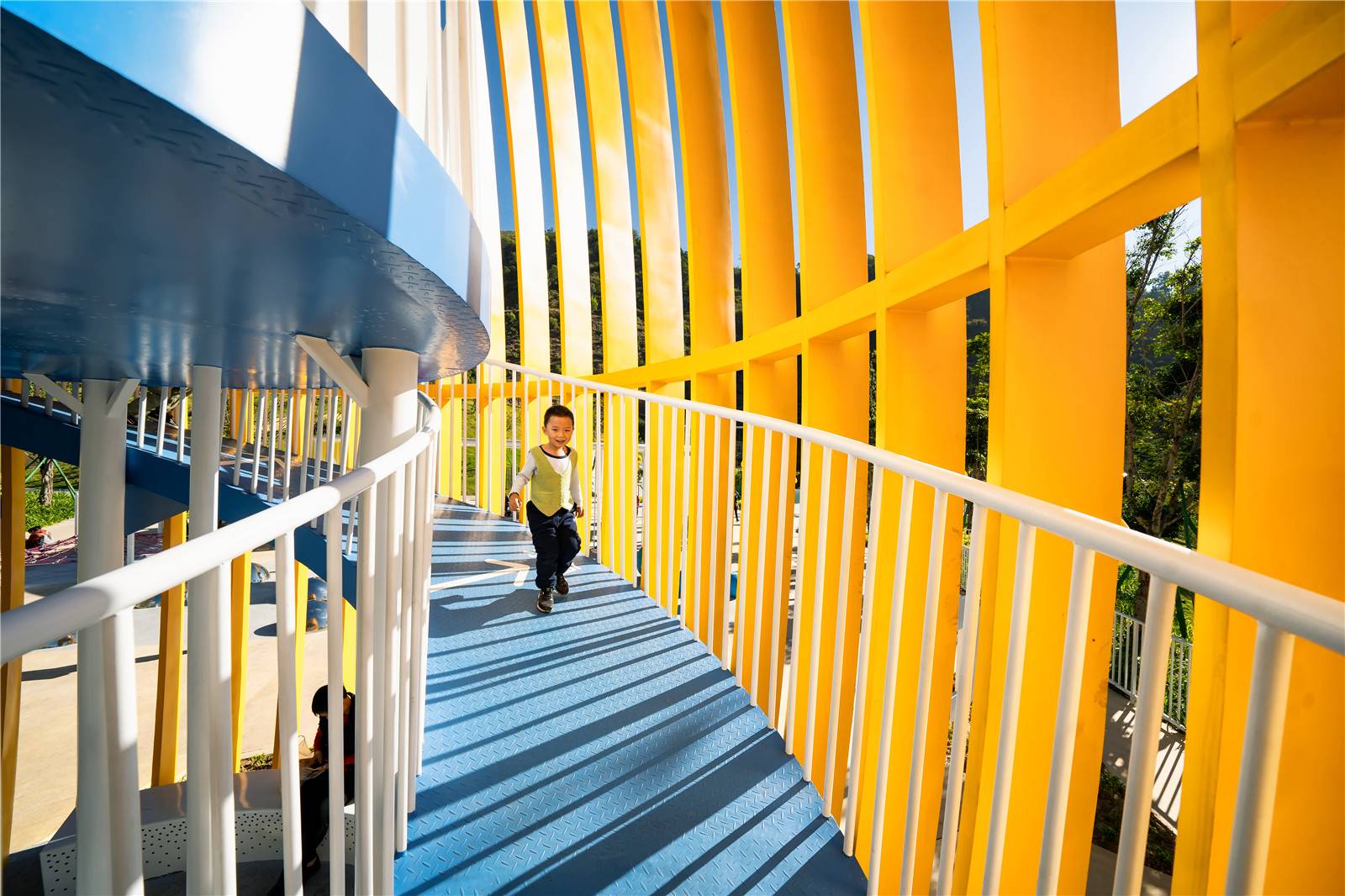 ▲芒果塔本是一座觀光塔,但也成為了孩子們的社交場(chǎng),他們喜歡這里鮮艷的色彩和跑上跑下的快樂(lè),孩子們?cè)谶@里分享他們的零食,交朋友,玩著屬于他們的游戲。