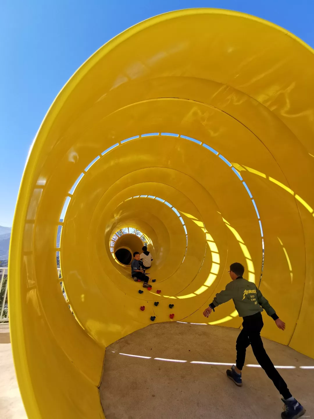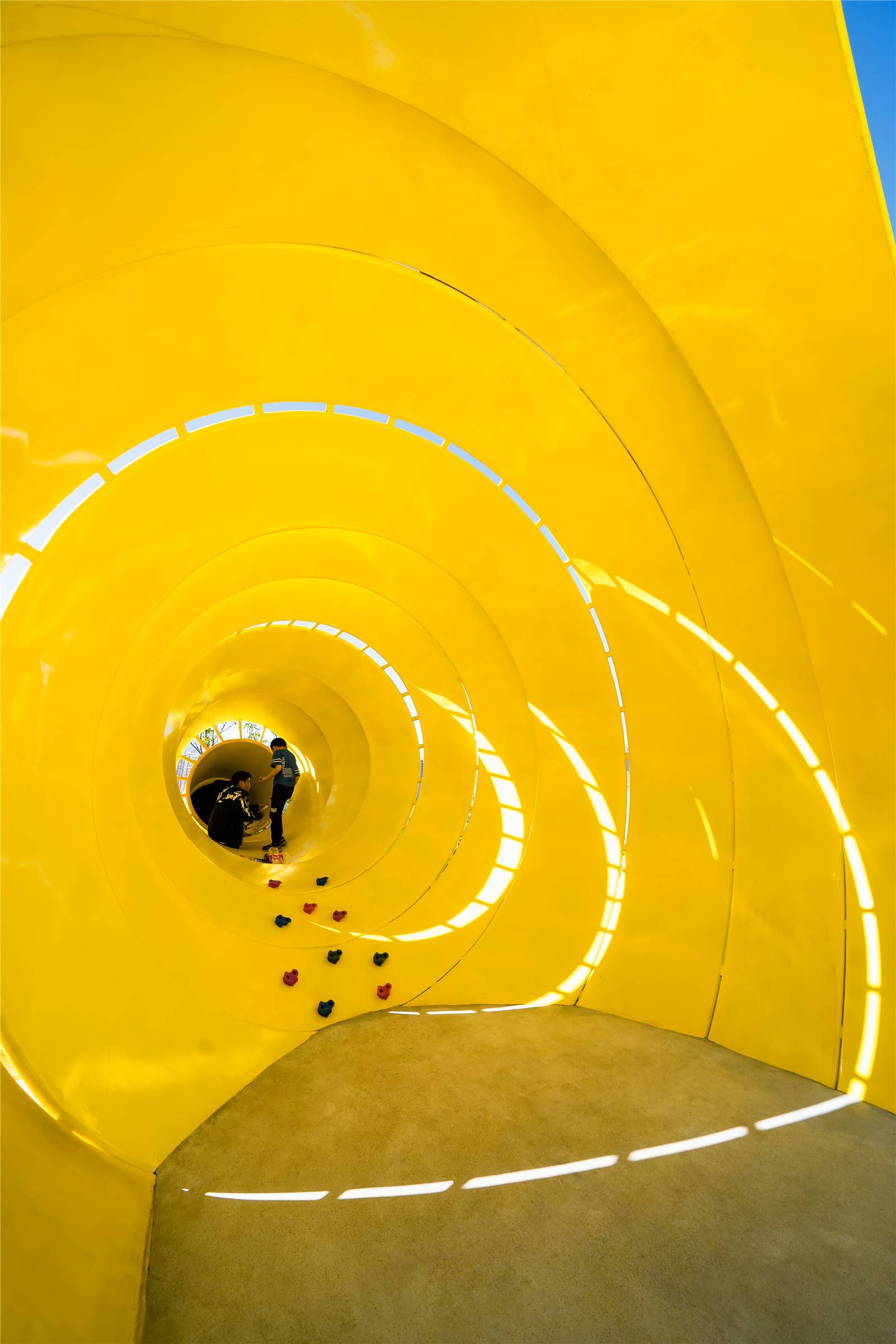 ▲水果滑梯有一個(gè)相對(duì)密閉又有光線透進(jìn)的空間,孩子們把這里當(dāng)成了“巢穴”,就像我們的小時(shí)候,同樣喜歡藏在紙箱里,喜歡那種巢穴感。