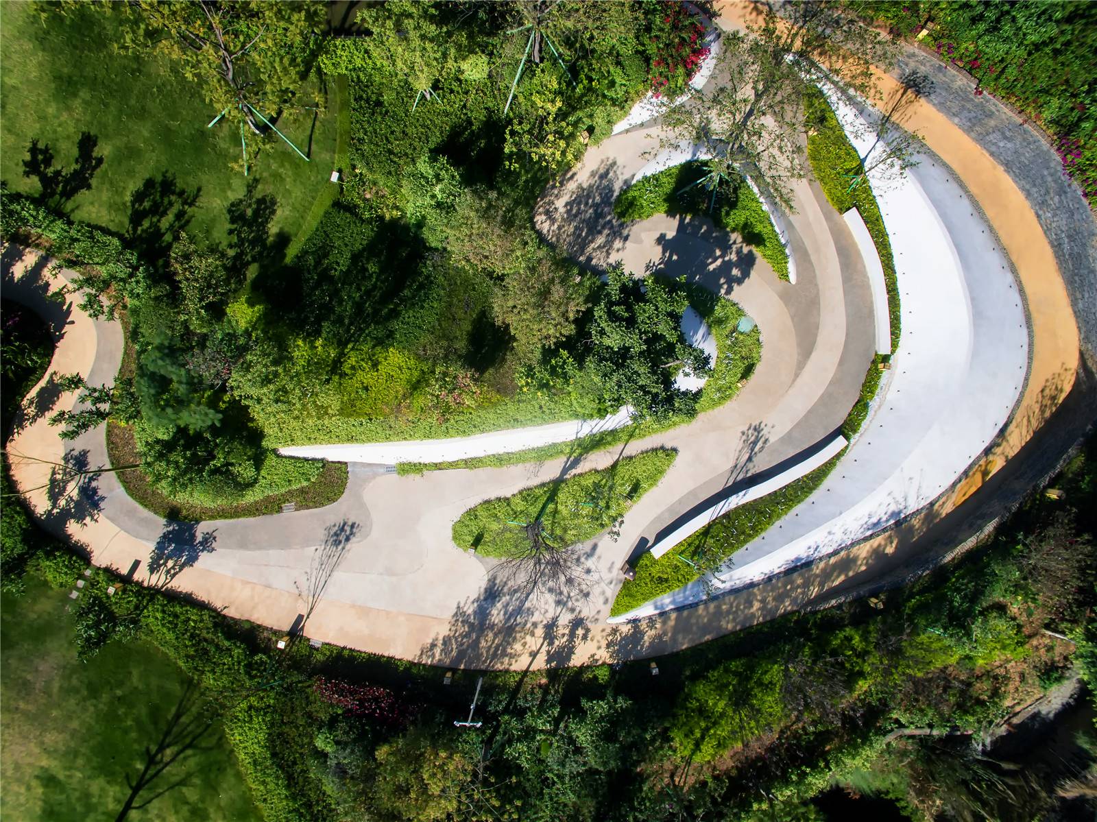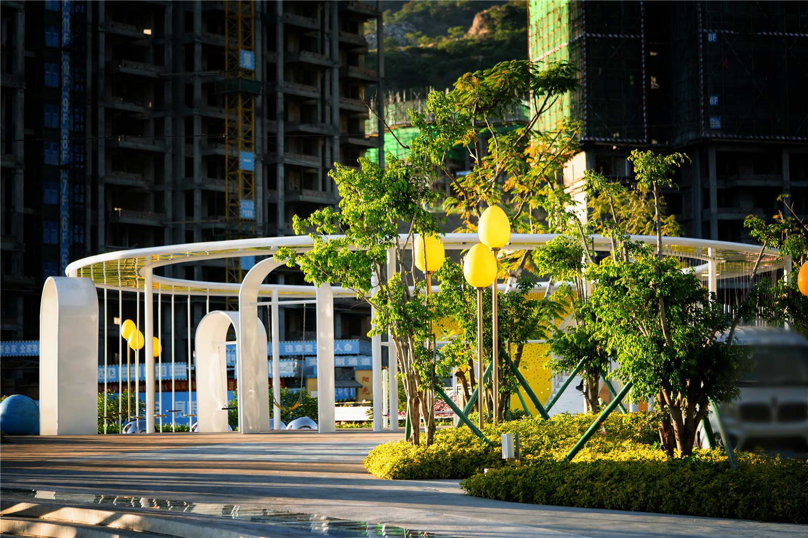 地塊位于中央公園社區(qū)中部,高差相對(duì)較大,對(duì)設(shè)計(jì)是一個(gè)很大的挑戰(zhàn),第一個(gè)挑戰(zhàn)是所有器械設(shè)施與場(chǎng)地高差的關(guān)系,設(shè)計(jì)與現(xiàn)場(chǎng)安裝都要精確,才能保證器械與場(chǎng)地的貼合。第二個(gè)挑戰(zhàn)是要結(jié)合兒童及成人的年齡屬性,合理選擇適合全年齡段的休閑游戲模式,并以藝術(shù)化的手法在場(chǎng)地中實(shí)現(xiàn)。第三個(gè)挑戰(zhàn)是要合理進(jìn)行游戲線路及過(guò)路主線的雙線規(guī)劃。