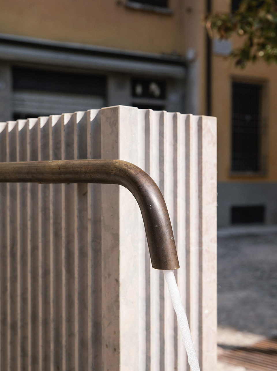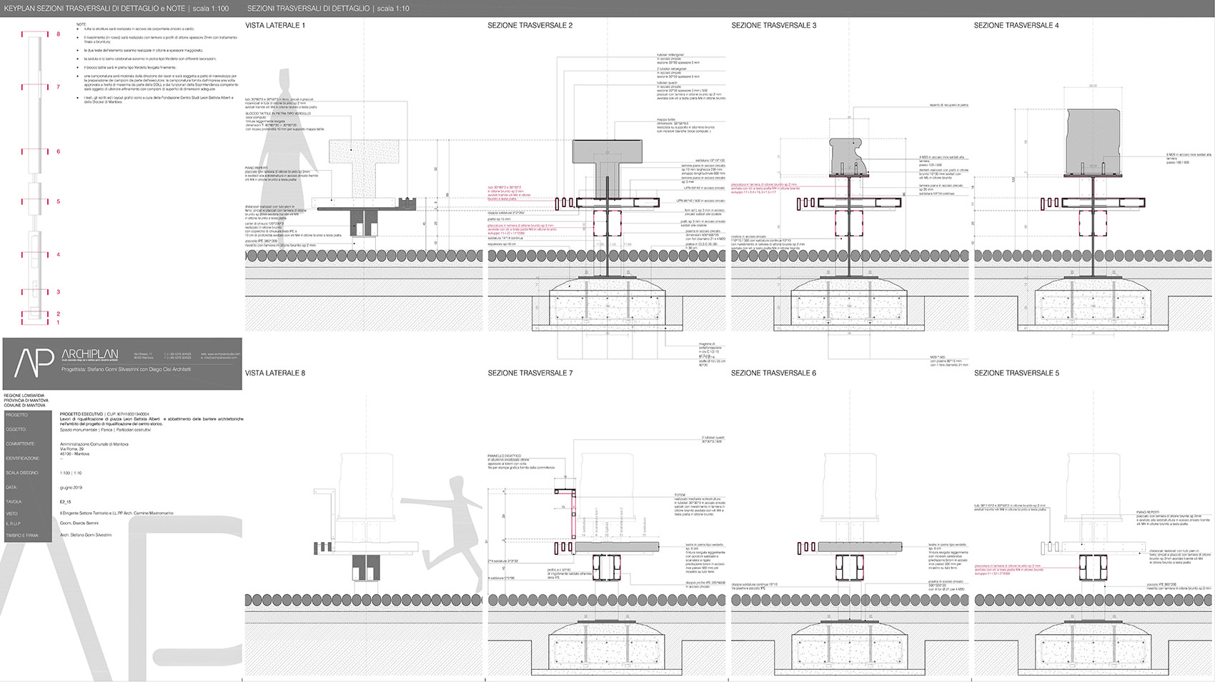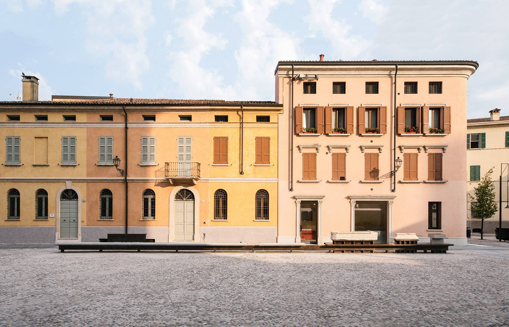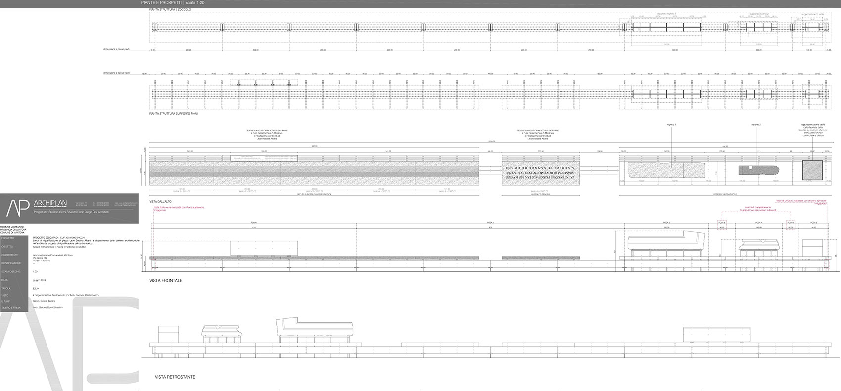 To separate the main places of the monumental space and the areas destined for commercial activities, a threshold was provided consisting of some engraved plates celebrating the intellectual figure of Leon Battista Alberti placed on the ground. This choice is linked to the lapidary tradition of the historic city which in Mantua has numerous and extraordinary examples; above all the front of the Bertani house and the churchyard of Santa Maria della Carità.