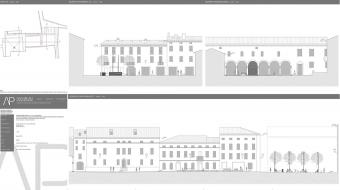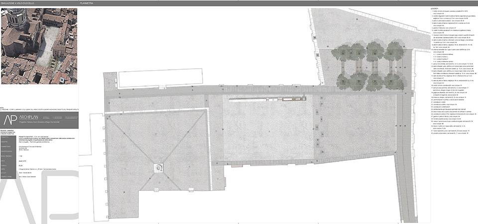 The formal choices underlie an almost archaeological approach with the intention of keeping in balance the signs that define the different characters of the places in the overall composition. The area on which the cloister once stood will still be identifiable in its geometric structure thanks to the use of white stone slabs that define the perimeter of the porticoed cloister.