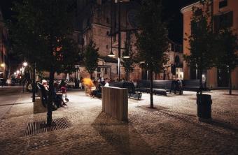 設計師在場地的西側設置了一排樹木,為廣場規(guī)劃出規(guī)則而清晰的邊界。此外,設計師還將綠化元素與長椅等服務功能引入項目,在場地的北側邊緣形成一個綠樹成蔭的休憩空間,為人們提供了一個日常休閑與商業(yè)活動過后的放松場所。