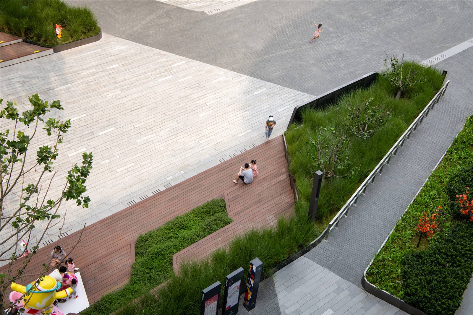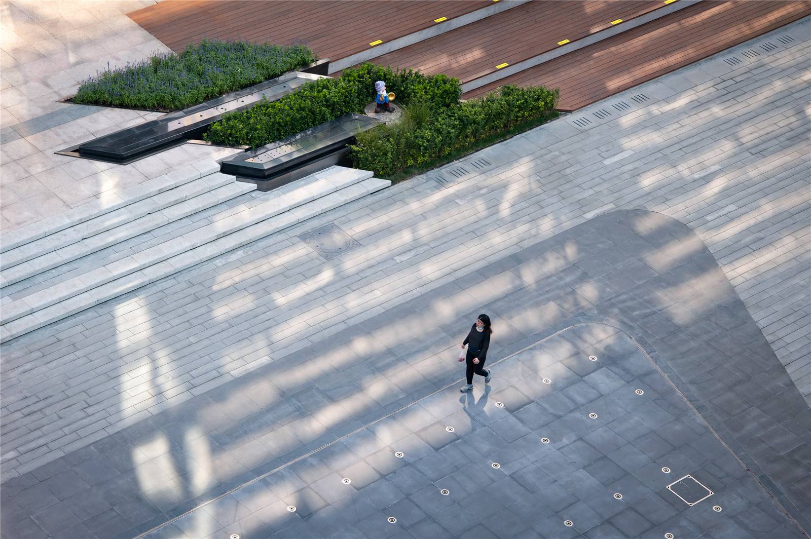 對(duì)小街屬性的重新定義,促使我們?cè)谠O(shè)計(jì)中對(duì)小街的空間格局進(jìn)行重新梳理,并運(yùn)用景觀的手段縫合街道兩側(cè)和連接整個(gè)城市片區(qū),相較傳統(tǒng)的城市街道空間,40米寬的小街更像是一個(gè)城市公共走廊,我們把它看成是一個(gè)社區(qū)與城市間轉(zhuǎn)換的通道,通過模糊邊界,利用現(xiàn)有高差區(qū)分通行空間和停留空間,建筑立面到整體多維的一體化等手段,打造一個(gè)既細(xì)膩又極具體驗(yàn)的純步行公共空間