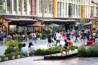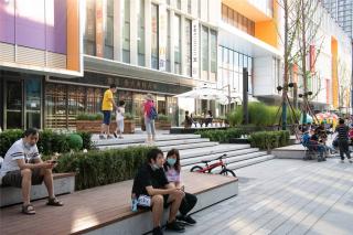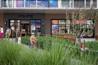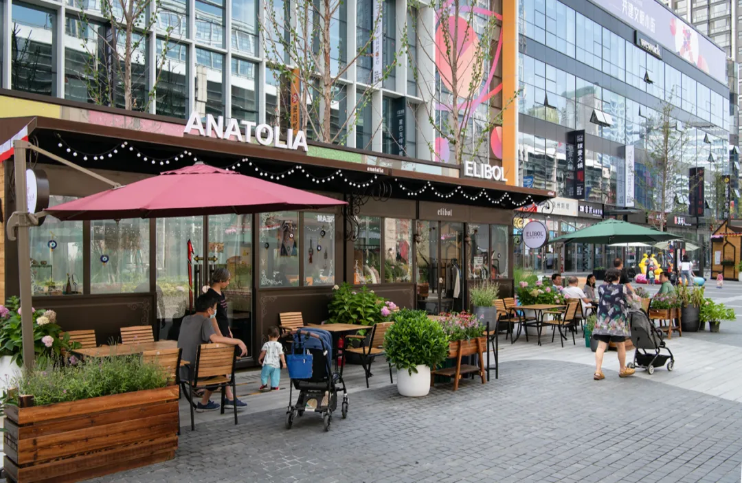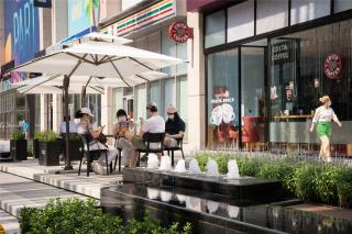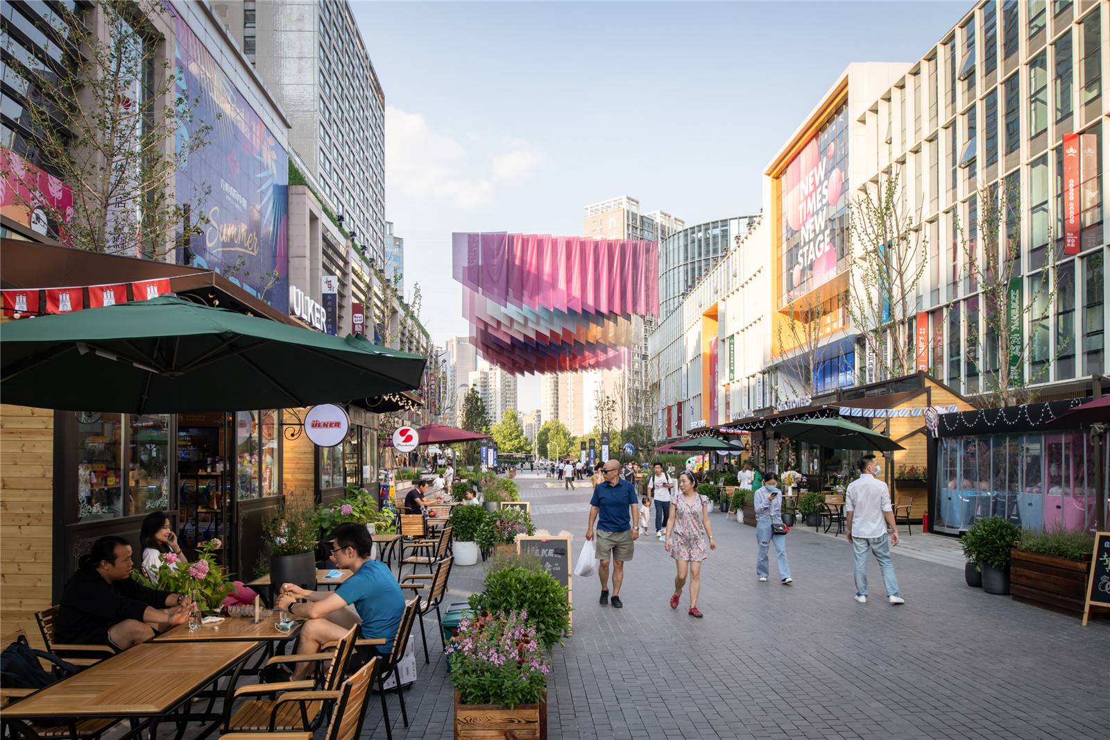 因此,朝陽區(qū)政府和萬科等項(xiàng)目投資方共同確定了望京小街的改造方向:開放性、輕時(shí)尚、生活化、交流性的國際商業(yè)街區(qū)。一條具有活力的商業(yè)步行街,一個(gè)回應(yīng)社區(qū)居民需求的線性城市空間取代了原本冰冷單調(diào)的市政道路,而步行街的英文名Wangjing Walk也意在強(qiáng)調(diào)其可行走性和慢生活的調(diào)性