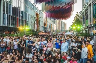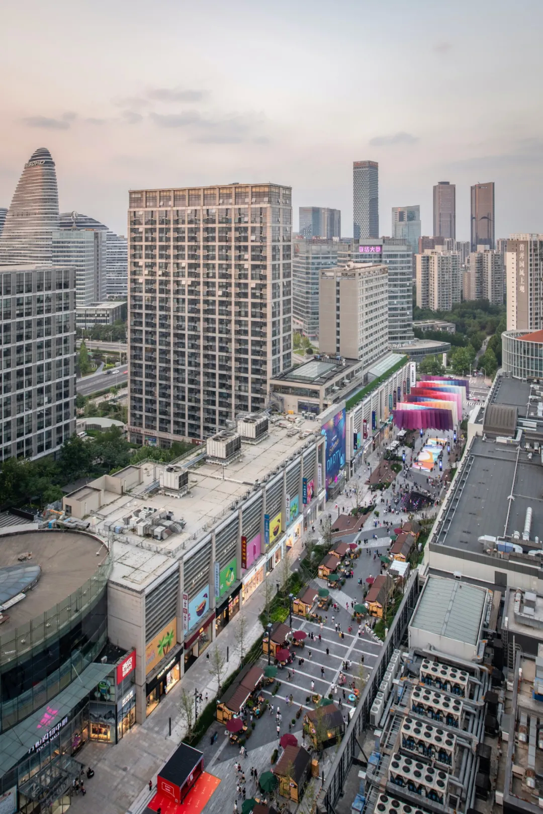 小街的煙火氣的呈現(xiàn)是在舒適的空間里,利用樸實(shí)親人的景觀元素,璀璨奪目的藝術(shù)光芒和底蘊(yùn)深厚的商業(yè)基調(diào),調(diào)和催化而成,它隨性不隨意,簡(jiǎn)約不簡(jiǎn)陋,在華燈初上的夜晚,午后斜陽下的周末,激發(fā)著各色人群相聚和交流:逛市集的文青、品手沖的好友、喝精釀的哥們兒、嬉戲追逐的親子、下海蹦迪的潮人…… 釋放著工作后的余量,包裹著相互間的情感。