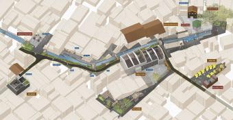 ▲六個(組)改造和新建設(shè)計項目分布于龍津河兩側(cè),Six (group) renovation and new design projects on both sides of the Longjin River ?趣城工作室