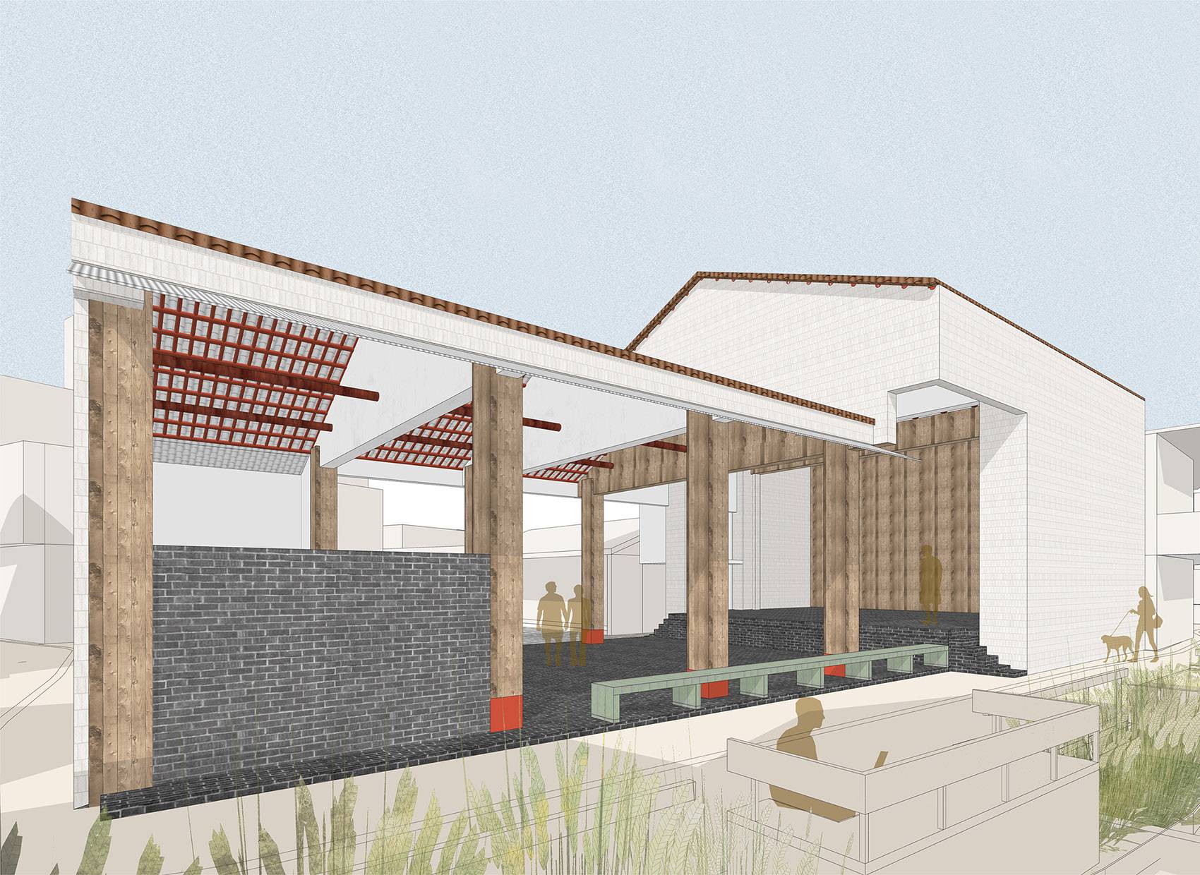 ▲利用廢舊木材和青磚創(chuàng)造具有歷史質(zhì)感的融合場景,Creating a fusion of historic scenes with salvaged wood and bricks ?白羽 BAI Yu