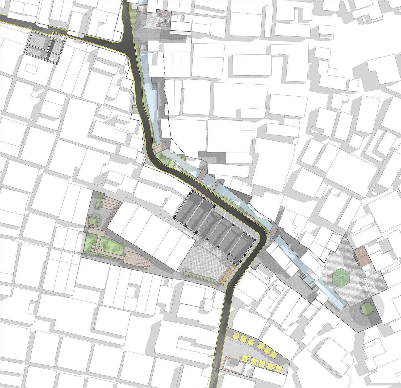 Rejuvenation of Shajing Ancient Fair is an urban micro-regeneration project which include river management, landscape design, architecture and interior design. The main task is to redesign the landscape of a section of the Longjin River which is about 70 meters. At the same time, important sites (such as ruins, old houses, theatres, etc.) were selected and redesigned by an approach of “fusion design”. In this way, architects increase the heterogeneity of the site and maintain spatial textures to activate the entire area.