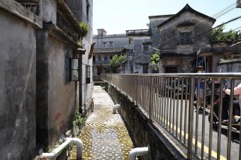 龍津河曾經(jīng)通航,從沙井古墟穿過直接流向珠江,是古代市集、貿(mào)易、運輸?shù)闹匾ǖ?。后來由于墟市的衰弱,河道被逐漸填塞、減窄、污染,變成一條寬度僅為2米左右的黑臭水體,并且被用鐵欄桿圍護(hù)起來,防止人掉入其中。項目采用低成本的雨污分流方法,把現(xiàn)有河道的縱 剖面分為上下兩層:下層是污水箱涵;上層是雨水通道(在沒有雨水時,可以將附近污水處理廠處理過的中水注入其中)。